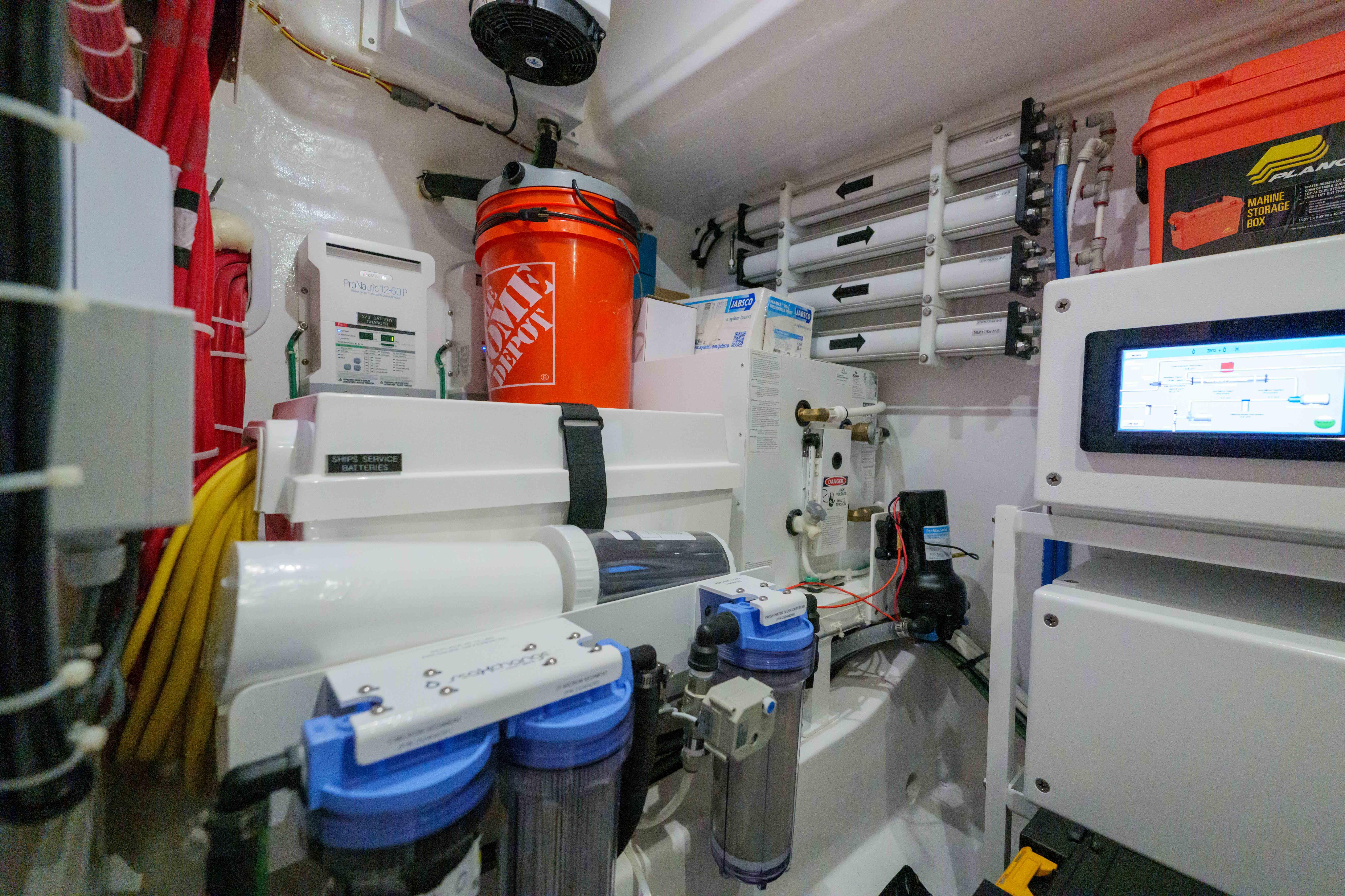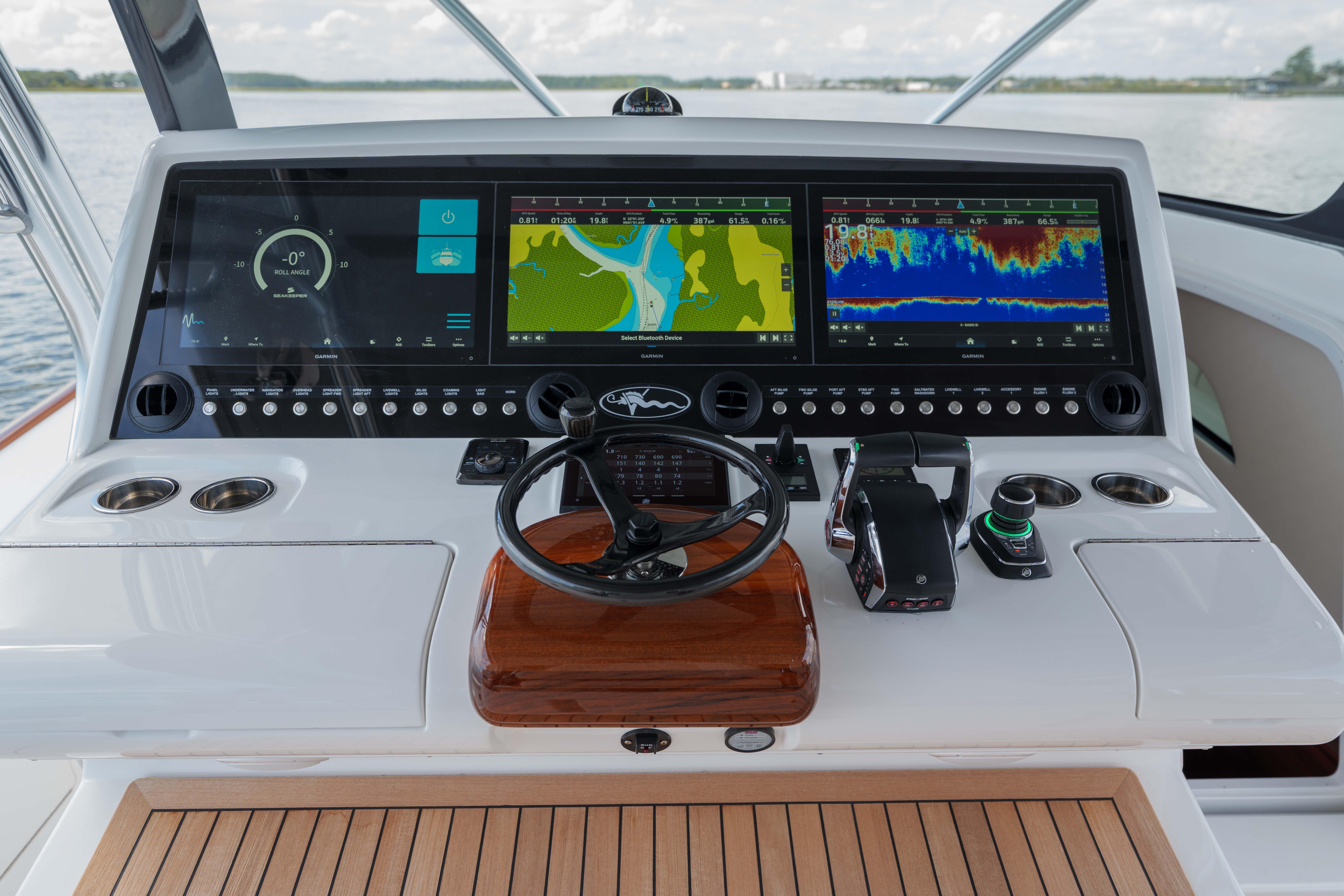 Perfect for fishing or cruising, the Valhalla V-55 offers unmatched luxury and performance with features like a Seakeeper SK9, Ice Chipper capable of 540 lbs per day, Electrosea system, and Spot Zero Combo Unit. Additional amenities include an anchor chute through the stem with SS plow anchor and windlass, engine flush Reverso automatic system, integrated transom foldable seats, upgraded Release Marine backrests for both forward and second-row seating, and a Release Marine helm pod.