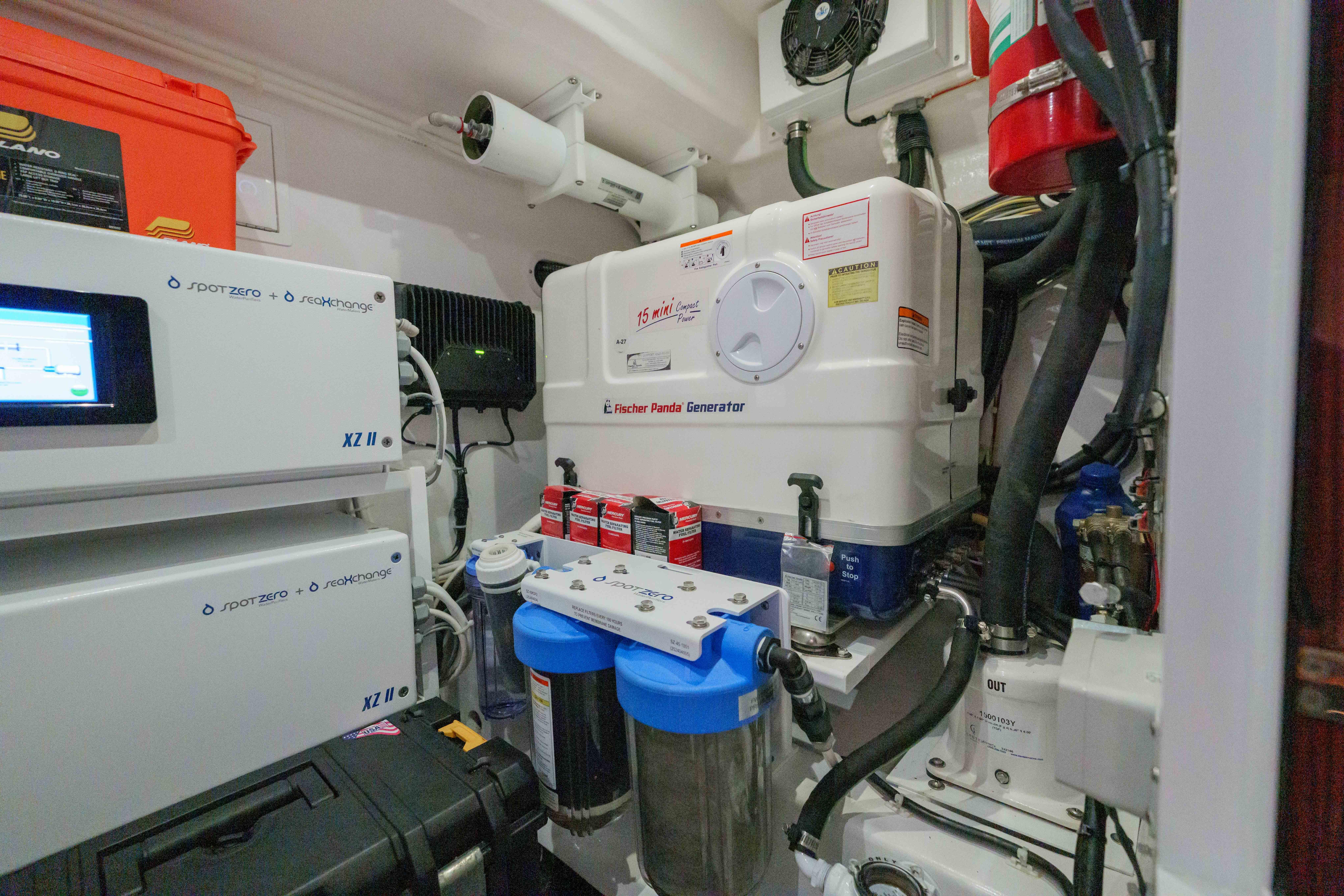 - (2) Icom M410BB VHF Radios, 15w hailer with speakers mounted above helm foot rest