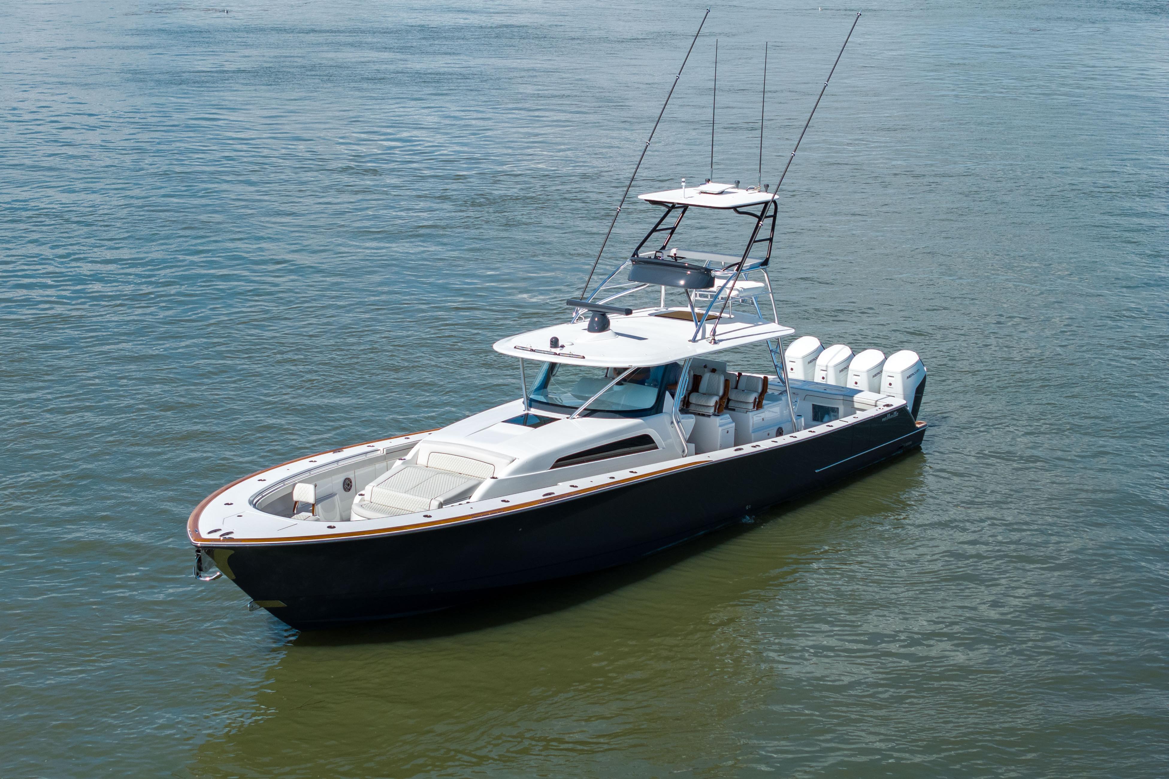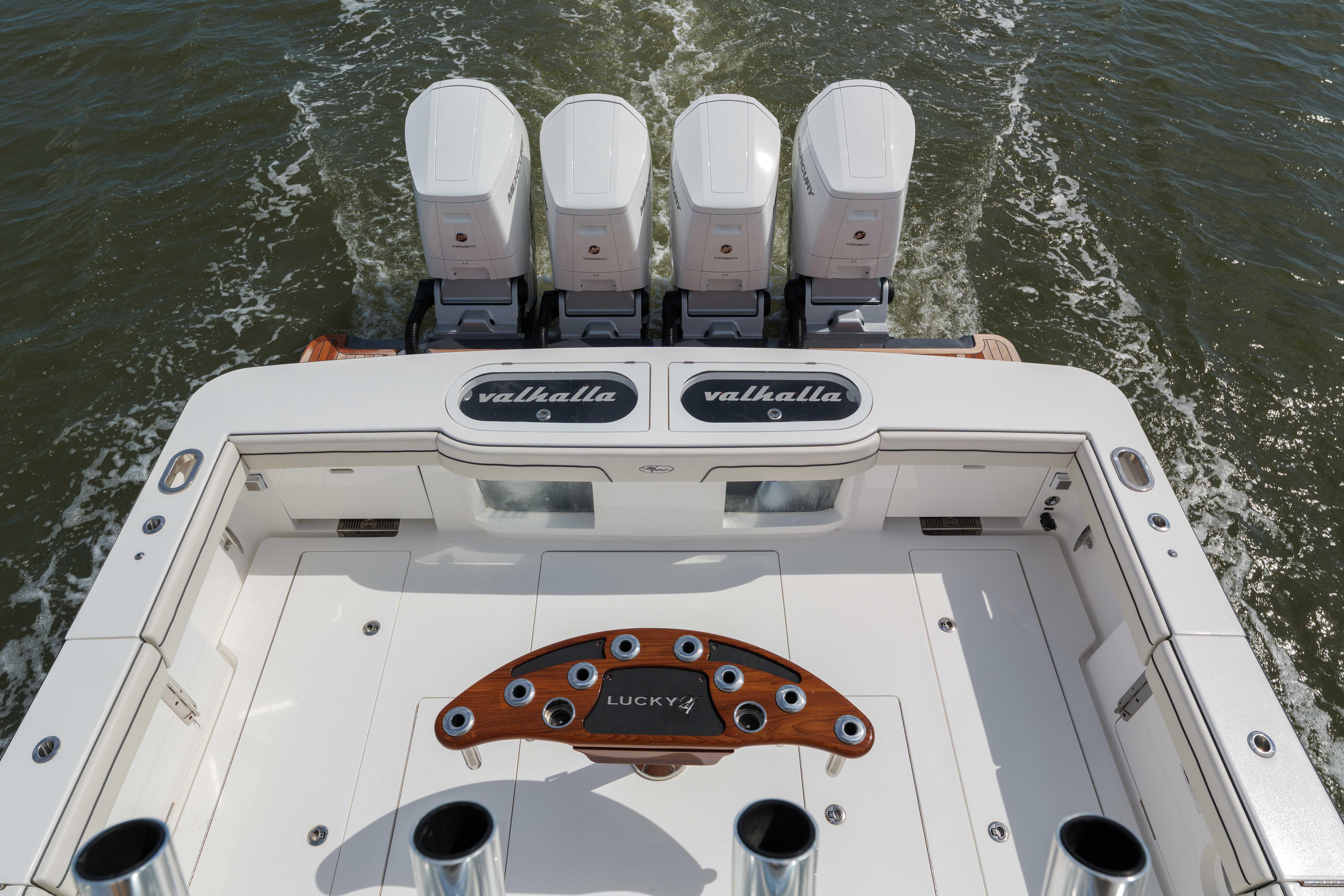 Introducing the stunning Valhalla Boatworks V-55 "Lucky 24," powered by four Mercury V12 outboard engines, each producing 600 horsepower for exceptional speed and agility on the water. With only 189 hours of use, these engines offer reliable performance for all your adventures. The vessel features a Custom Marlin Tower Palm Beach and an AME Electronics package, complemented by JPOD joystick control and a bow thruster for effortless maneuvering.