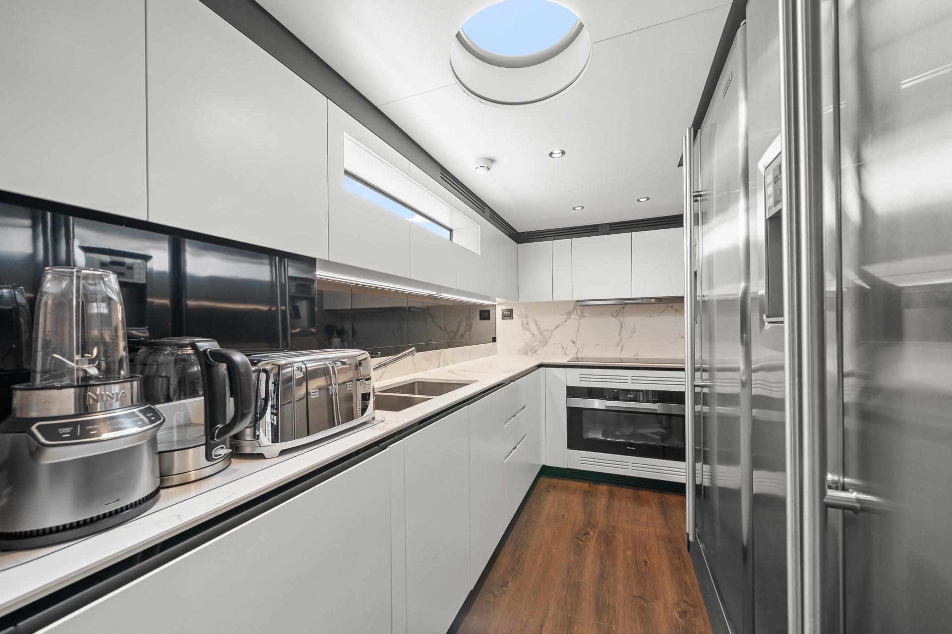 - The galley is very spacious for an 88-foot yacht and has ample refrigeration and freezer space in 2 LG units.