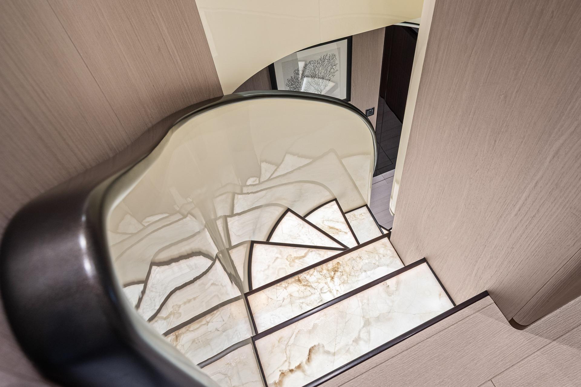 - The marble steps are illuminated and wrap around as you make your way down to the 4 lower guest staterooms.