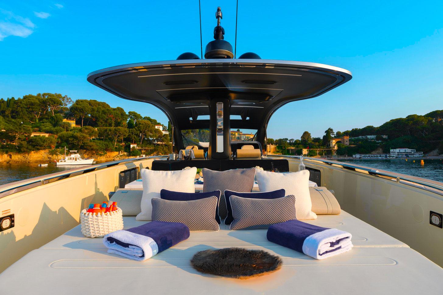 Le double écran GPS Volvo de 16 pouces, intégré dans le Glass Cockpit, assure un pilotage intuitif et précis, tout en permettant une gestion optimale de tous les paramètres du bateau. L'air conditionné réversible garantit un confort absolu en toute saison, qu'il fasse chaud ou froid, pour que chaque moment à bord soit agréable. À l’intérieur, le système audio Fusion Lounge, composé de 16 haut-parleurs, vous plonge dans une ambiance sonore immersive, transformant chaque instant en mer en une véritable expérience sensorielle.
