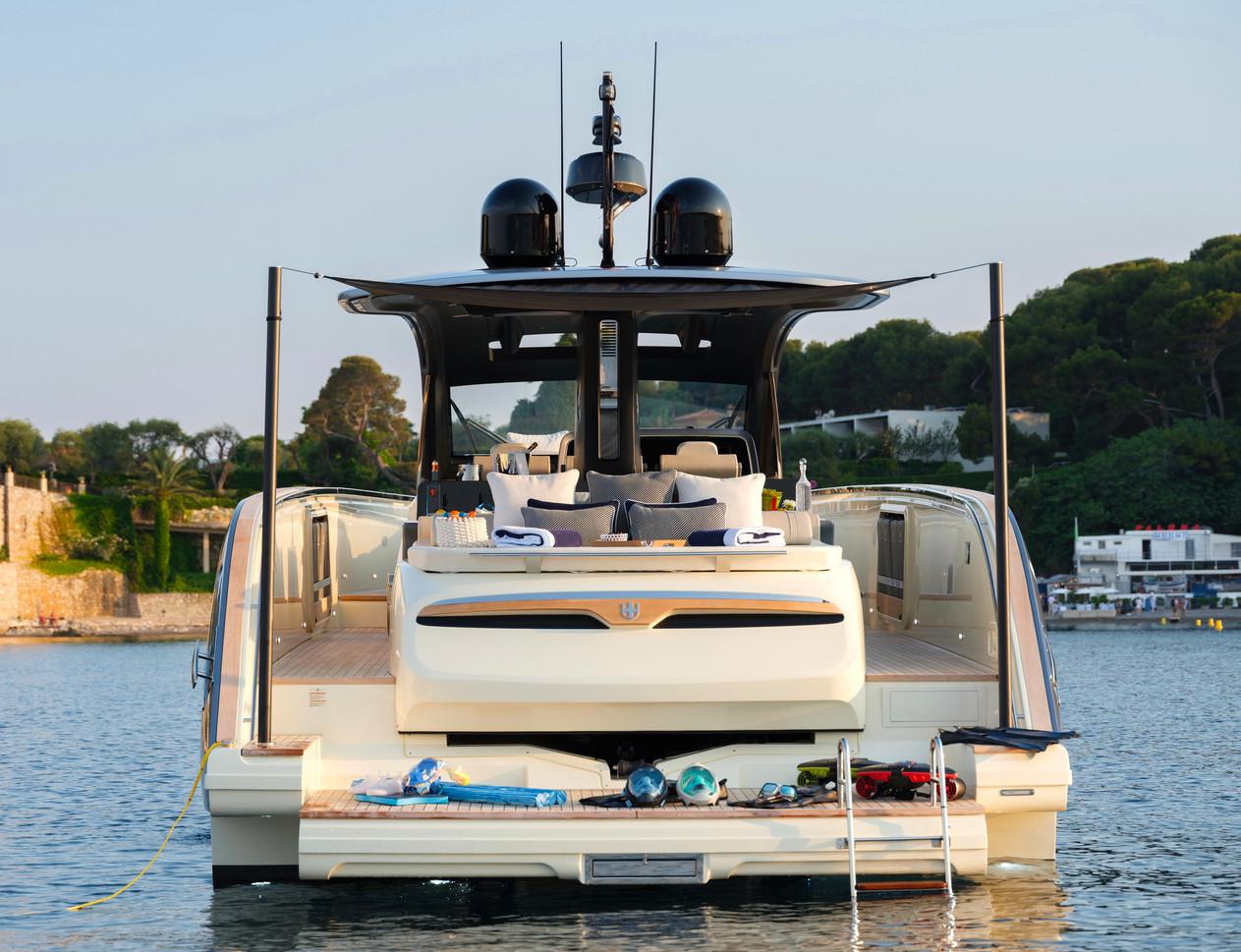 Ce TT460 en finition Spectrum Blue métallique incarne l'élégance ultime et l'innovation technologique. Avec son design raffiné et ses caractéristiques de haute performance, il redéfinit l'expérience nautique. Son stabilisateur gyroscopique MCX13 réduit le roulis de manière efficace, offrant ainsi une navigation fluide et stable, même dans les conditions les plus exigeantes. La plateforme hydraulique facilite l'accès à l'eau et permet un embarquement sans effort d'une annexe, tout en offrant une polyvalence accrue pour vos activités nautiques.
