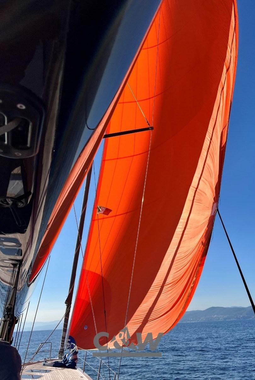 SailsMainsail (3Di Ocean, avvolgibile), Jib (3Di Ocean autovirante), Mainsail Furling System (elettrico), Boom furler (elettrico, carbonio, Hall Spars), Rod Kicker (idraulico).