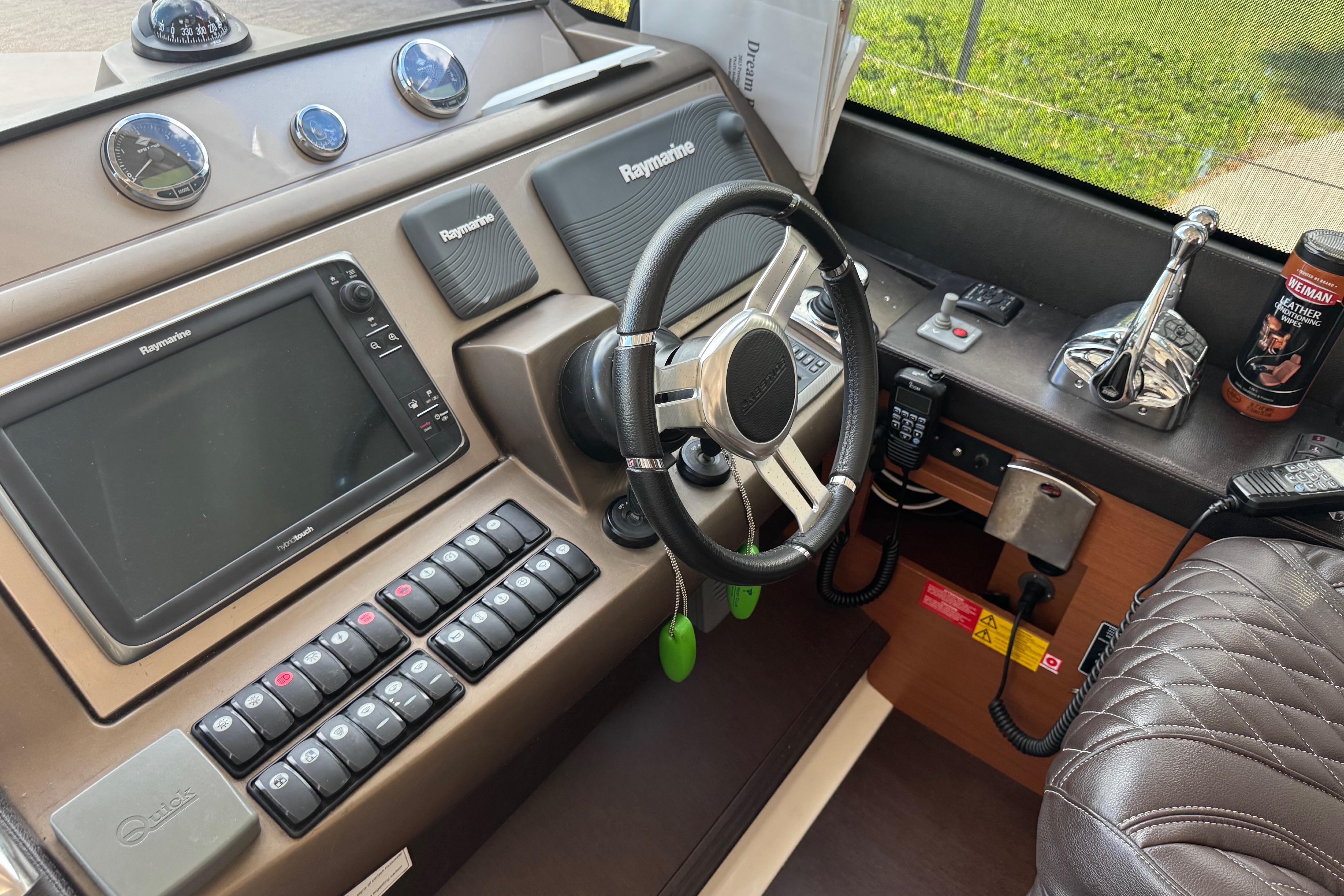 Interior pilot station equipped with dual Raymarine multifunction displays for full navigation and system monitoring