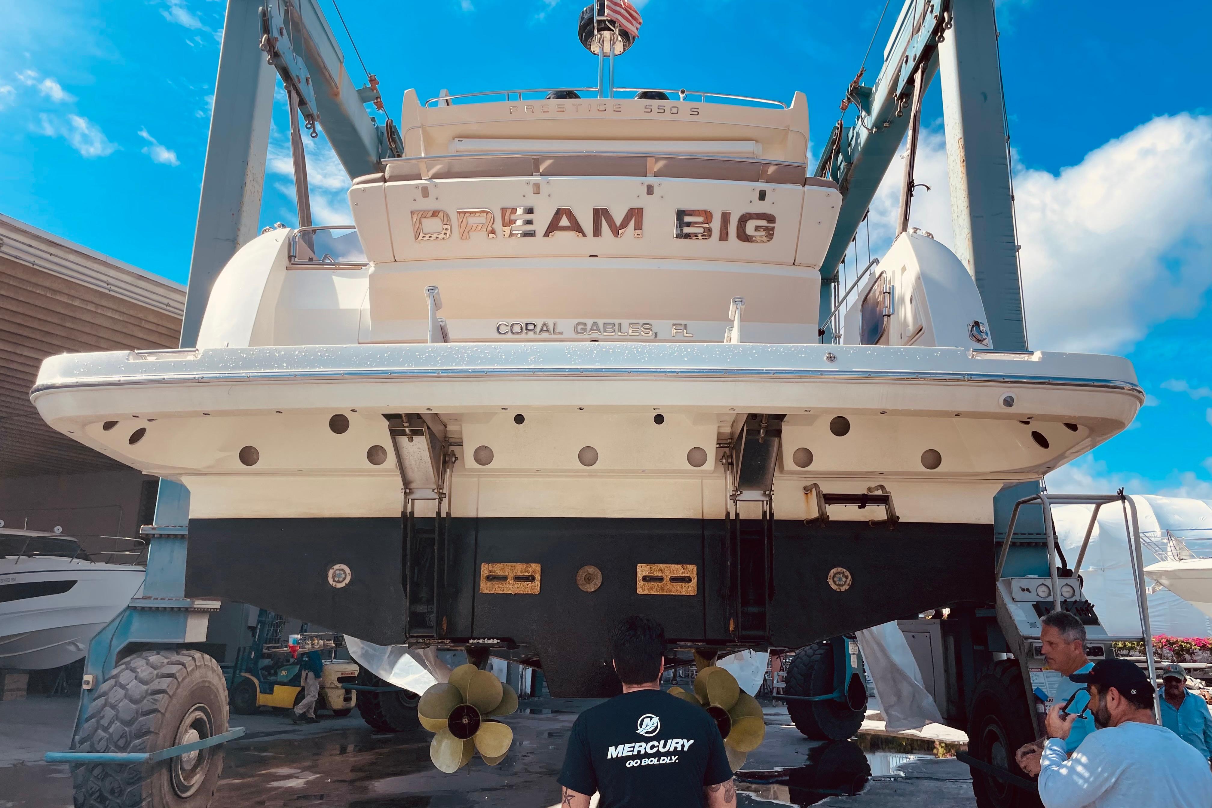 This 2013 Prestige 550S is available now and stands out as a fully equipped, turnkey sport yacht that has been meticulously maintained with an open checkbook. Notable upgrades include a SeaKeeper 6 gyro stabilizer, an upgraded air conditioning system, a watermaker, and a hydraulic swim platform.