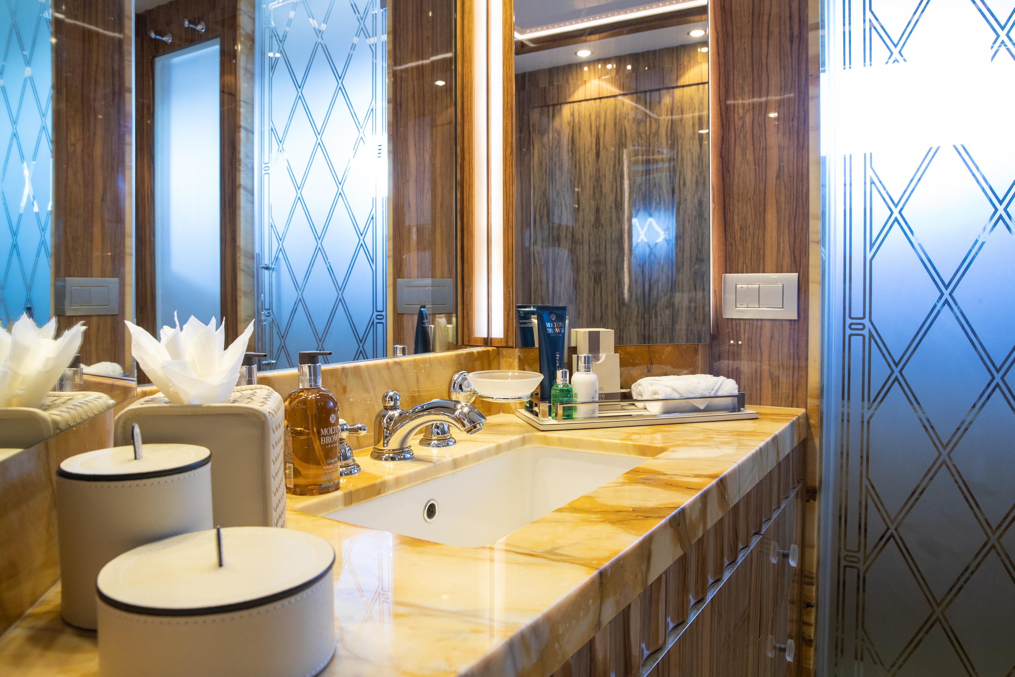 Her interior and exterior design come from the creative vision of Giorgio Vafiadis, who has achieved a luxurious yet contemporary aesthetic. The result is a seamless blend of modern elegance and timeless comfort, evident throughout her spacious layout.