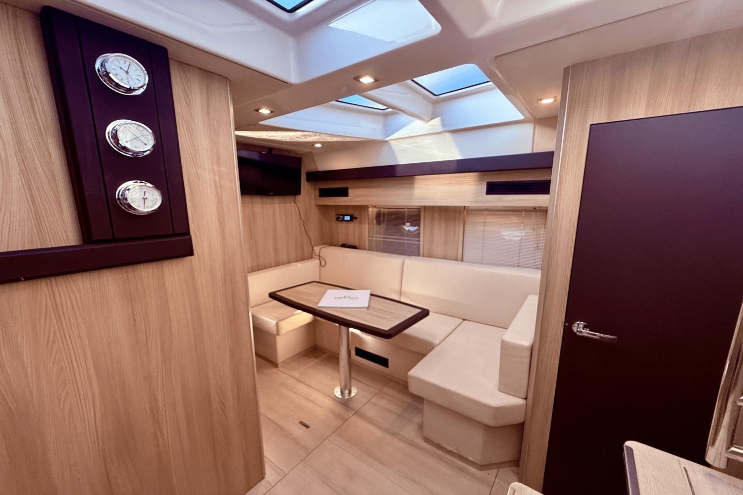 Powered by twin Volvo Penta IPS engines, the M44 HT delivers smooth handling and impressive speed, ensuring an exhilarating yet comfortable cruise. The spacious flybridge provides panoramic views and ample seating, ideal for entertaining guests or relaxing with family. The interior boasts a contemporary design with premium furnishings, a fully equipped galley, and a luxurious master stateroom.