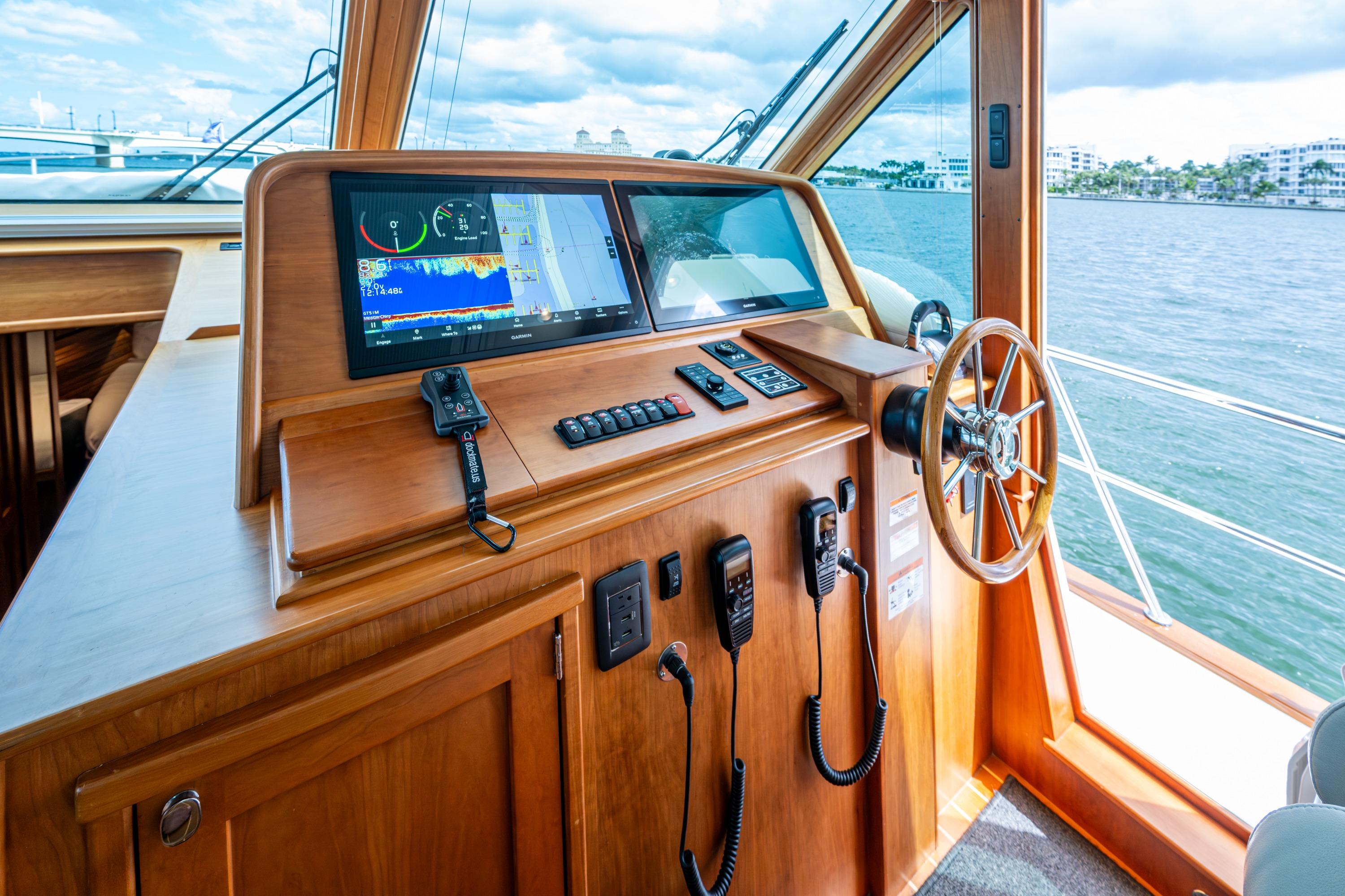 ElectronicsCustom Garmin electronics installation including (2) Radars, autopilot, depth indicator, GPS/PLOTTER, (2) VHF radio, FLIR camera, STARLINK, KVH SAT TV