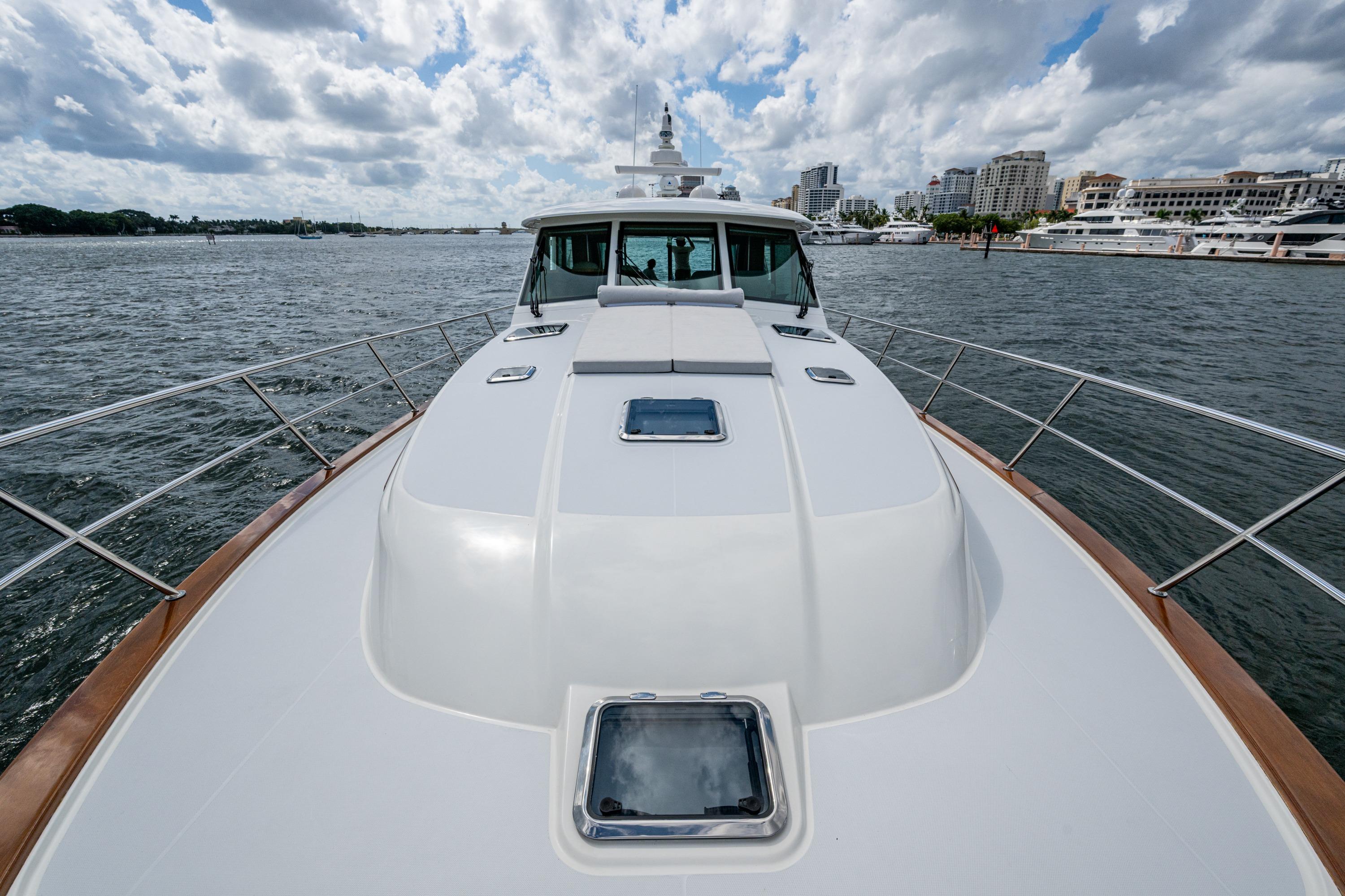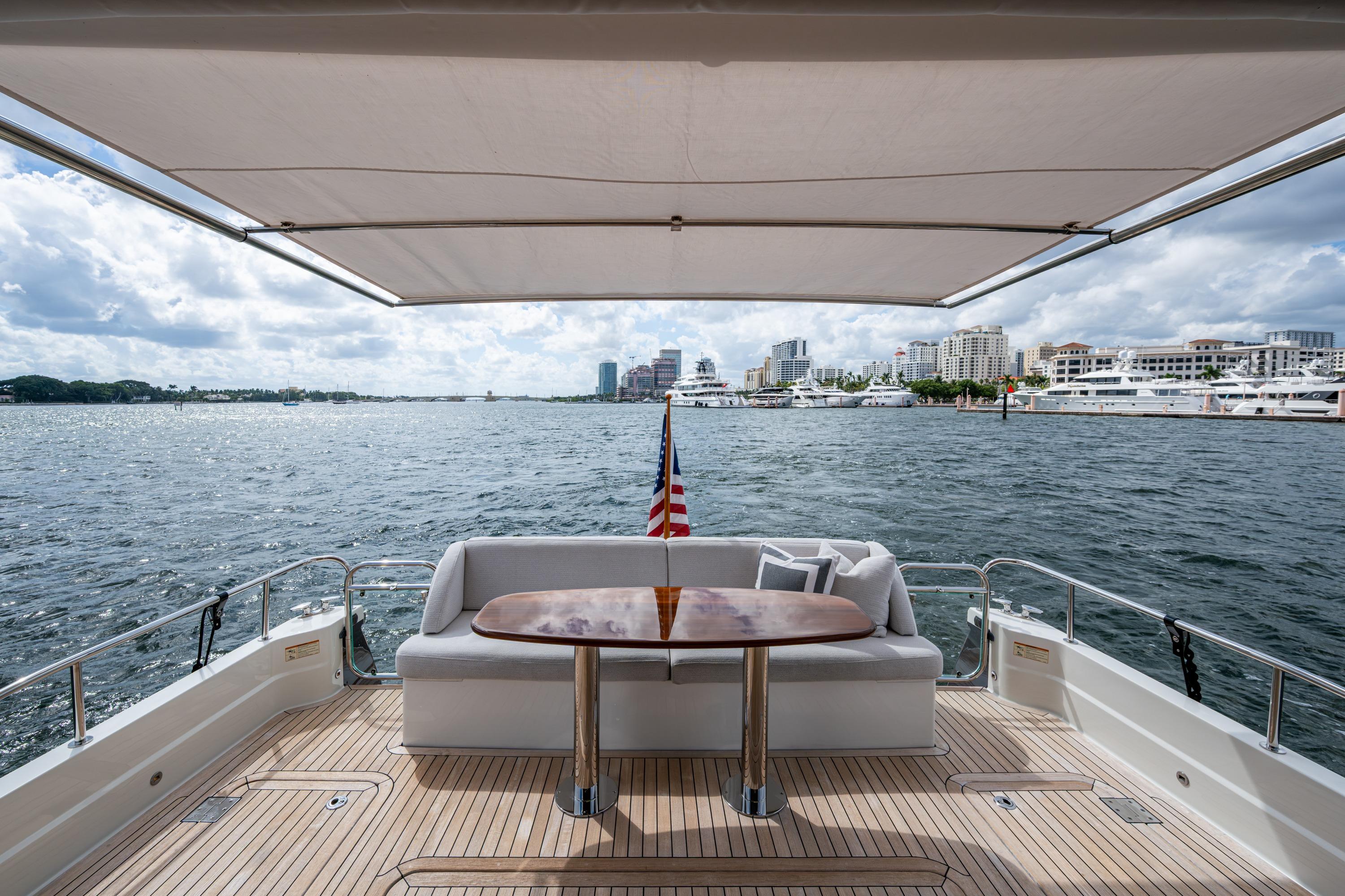 Notable Features & OptionsSEAKEEPER 18 GYRO, hydraulic swim platform, garage storage area, bow thruster, LUMISHORE underwater lights, DOCKMATE remote docking system, JOYSTICK controls, SURESHADE retractable cockpit awning, hydraulic/electric hatch for engine room access, SAVANT entertainment system, custom bow sunpad, fresh water in engine room and anchor locker
