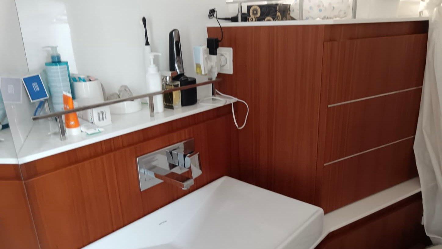 Her interiors are luxurious yet minimalist, showcasing premium materials and refined finishes throughout. The layout features two elegant cabins and one well-appointed bathroom, offering a balance of comfort and contemporary style. Every detail has been designed to maximize livability and enhance the onboard experience.