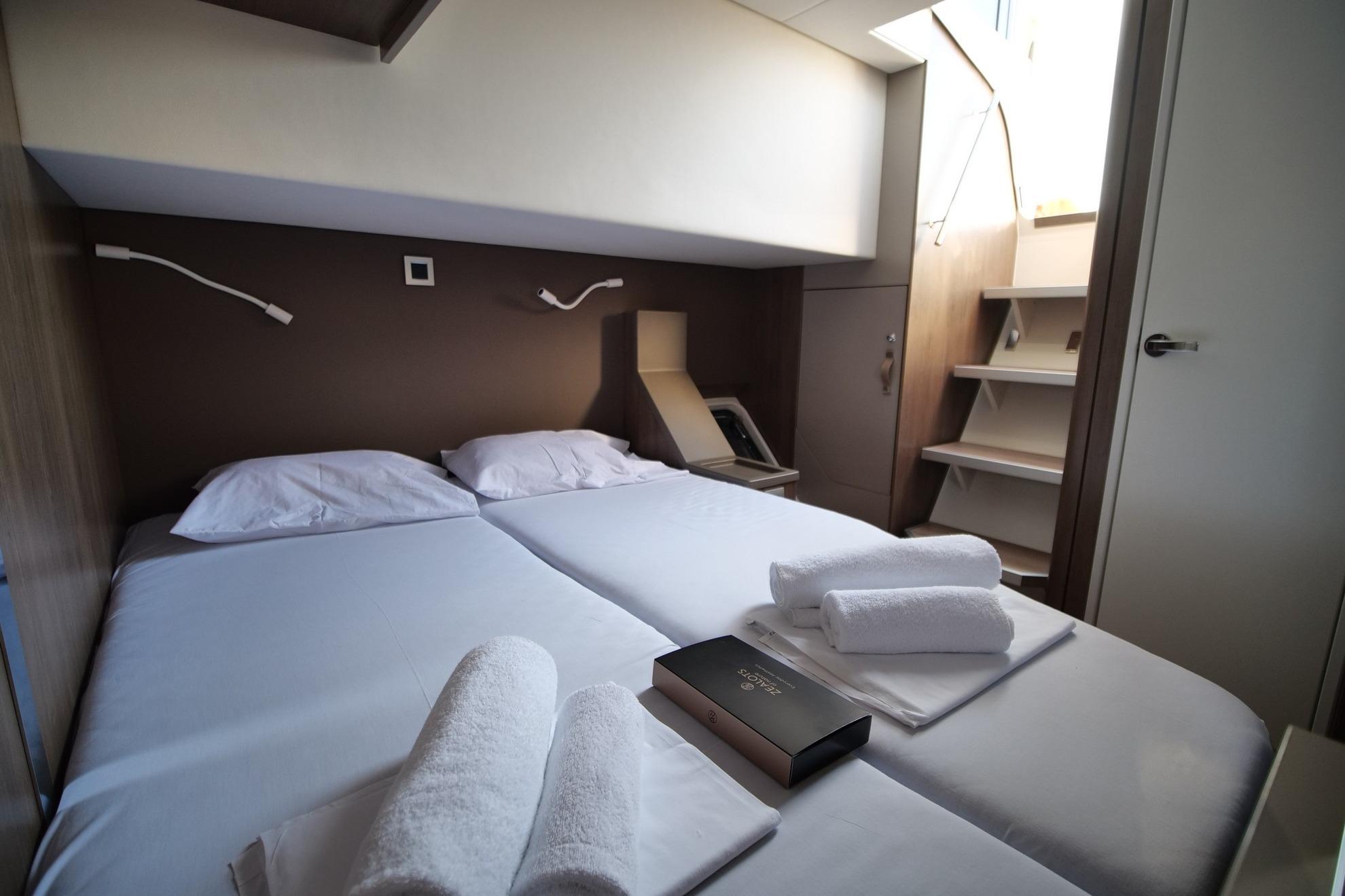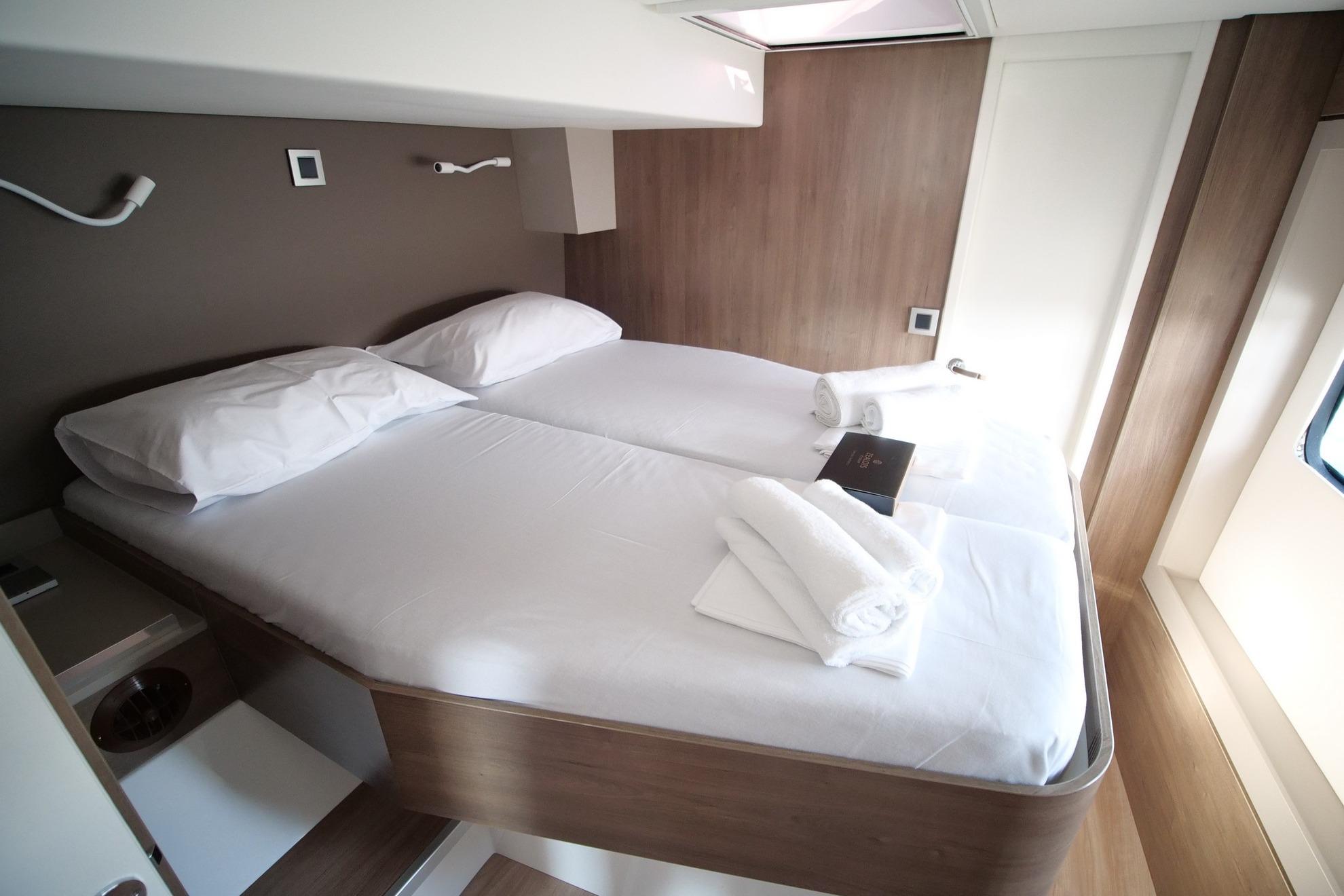 Owner’s suite occupies the entire port hull for maximum privacy
