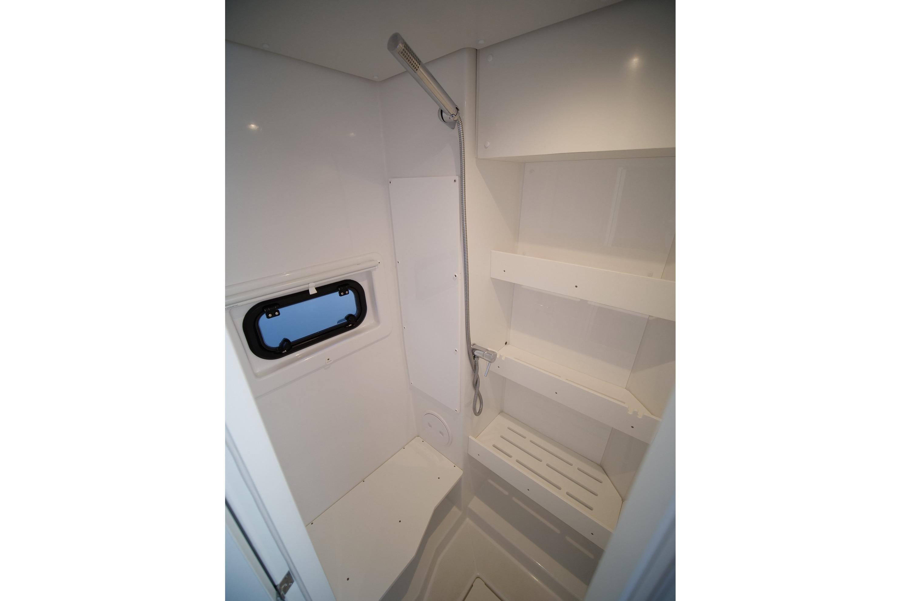 Davits and aft swim platform with shower