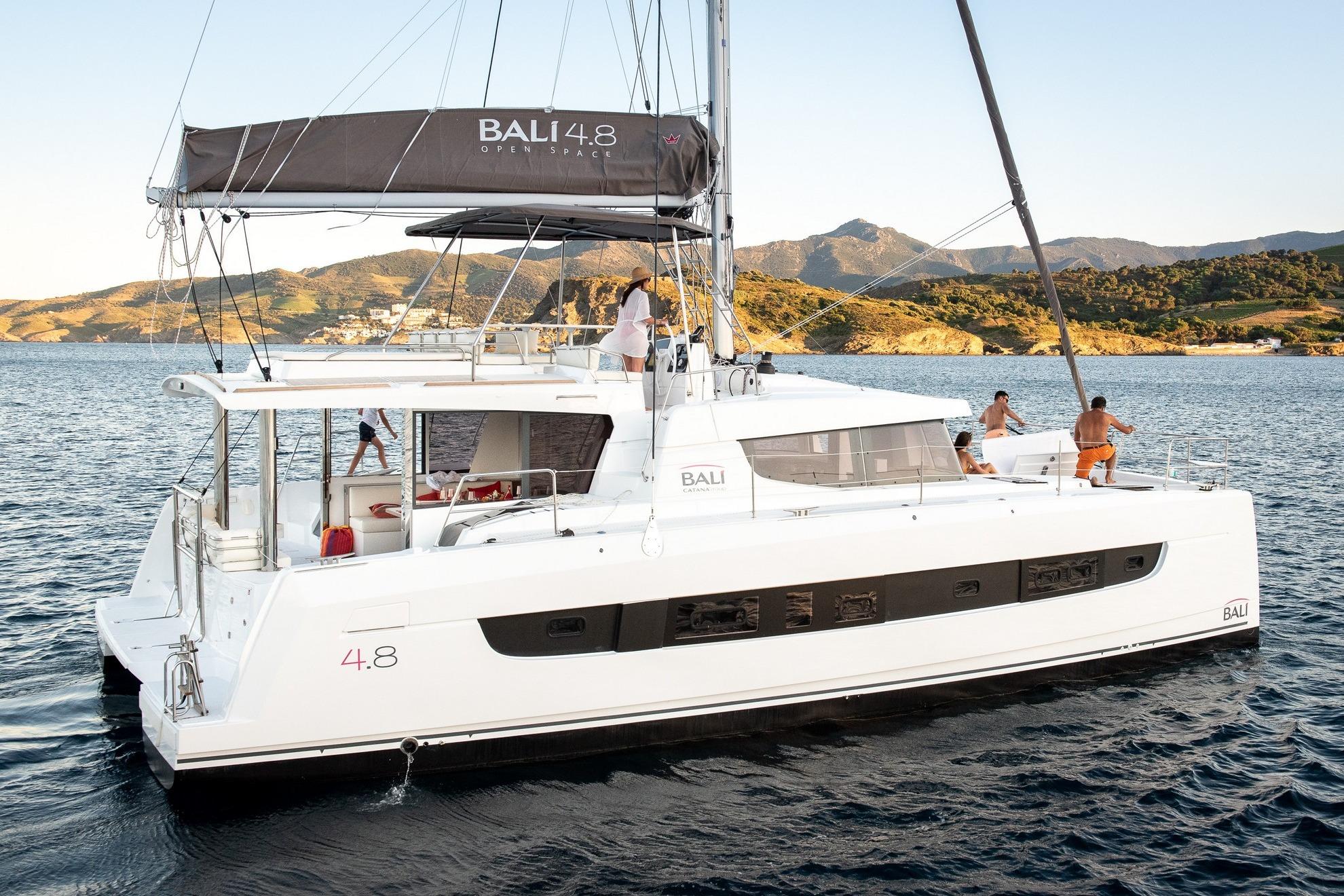 Discover the unrivaled appeal of the BALI 4.8—where cutting-edge design meets Catana Group heritage. Building on celebrated innovations like the rigid forward cockpit lounge and sun-pad, the expansive sugar-scoop Experience the BALI 4.8– a 48-footer that reimagines modern cruising. Its sun-soaked forward cockpit lounge, expansive sugar-scoop platform with built-in seating and lockers, and signature oversized coachroof door with sliding windows create an unparalleled open-plan living space. Ingenious interior and aft-deck access to the bow and cabins ensures seamless flow, while an optional six cabin, six-bath configuration delivers yacht-style comfort. Backed by Catana Group’s 30-year heritage of performance, safety and craftsmanship