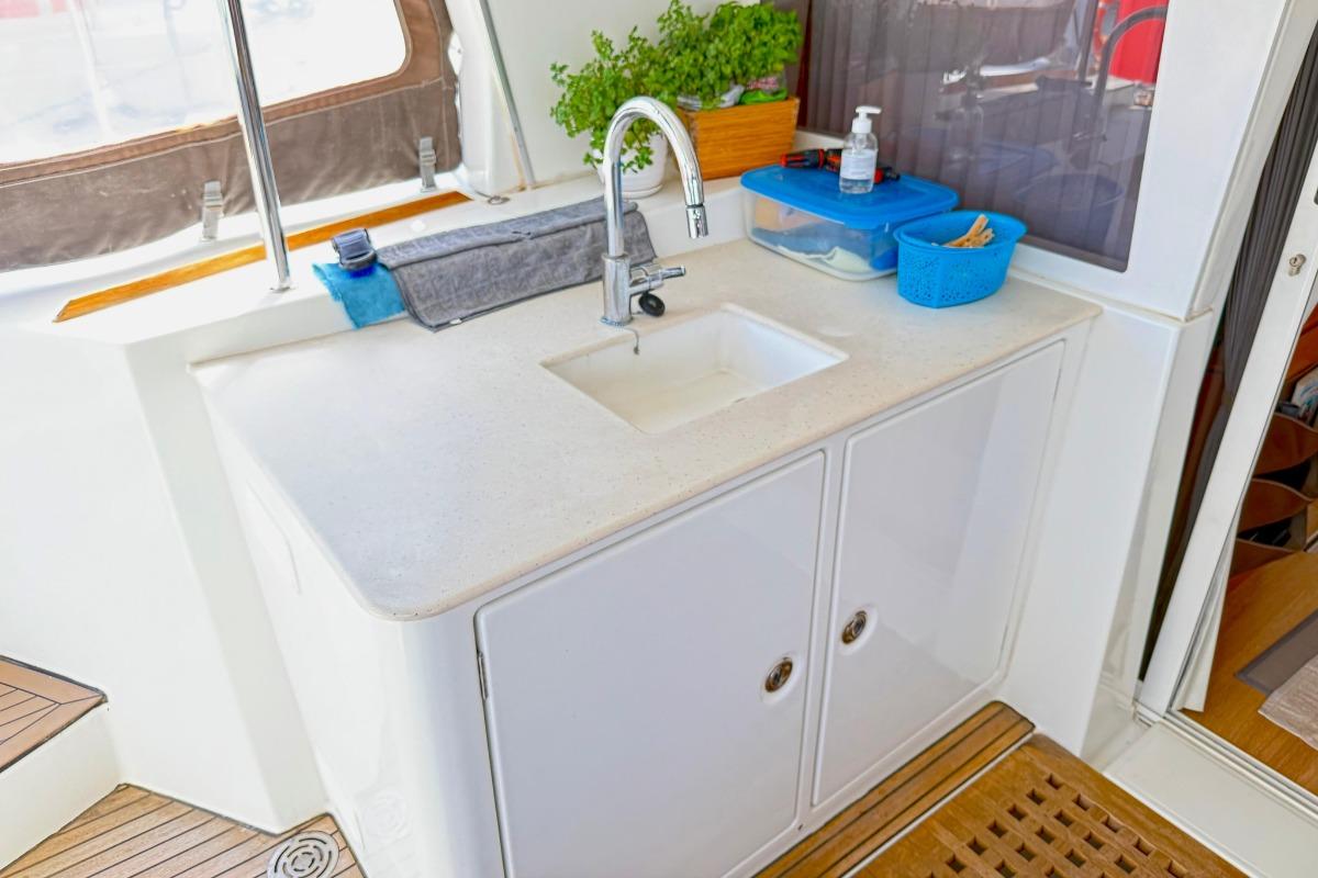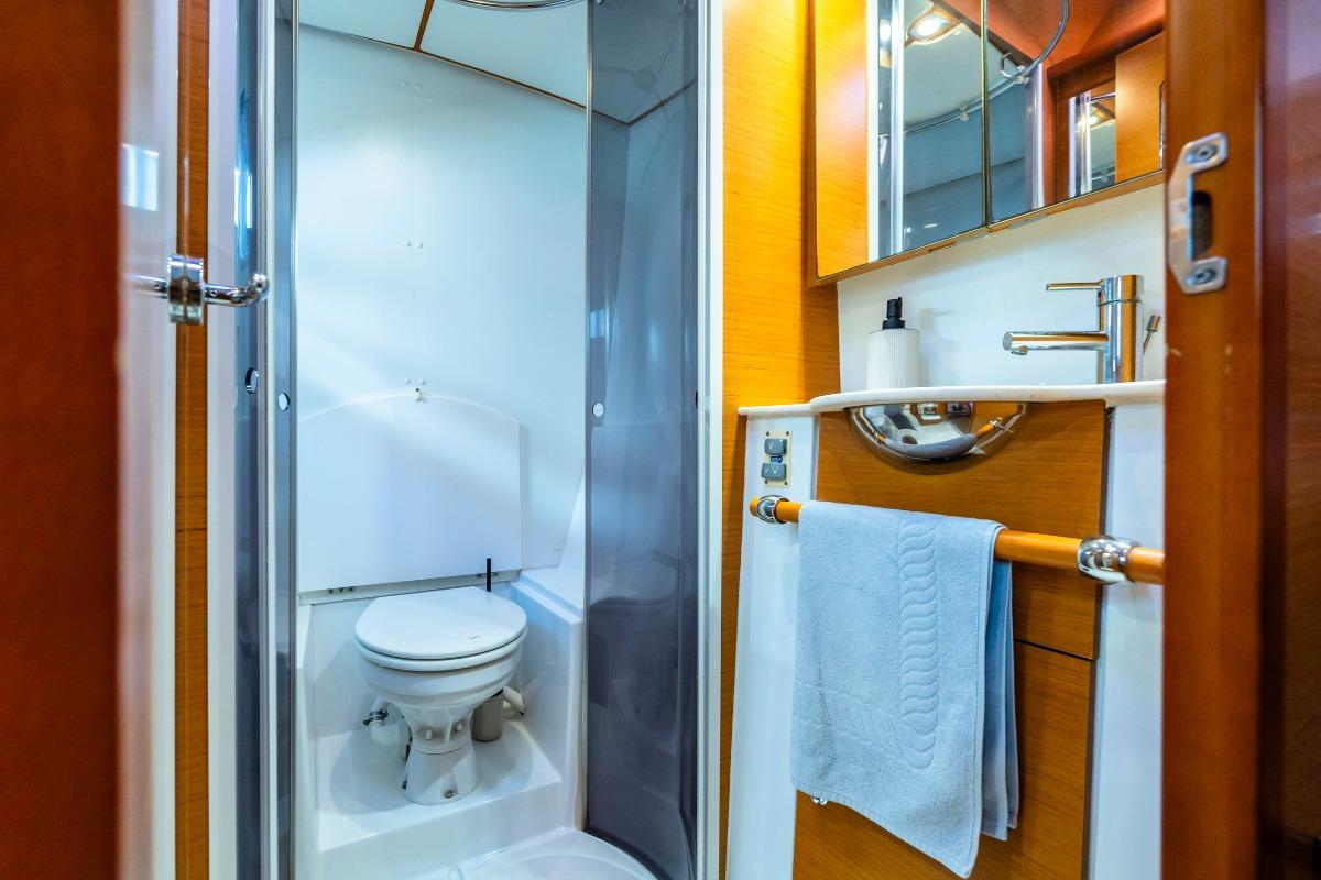 Full optional con aria condizionata, generatore, dissalatore, inverter, elettronica con VHF, Radar B&G, 2 GPS, autopilota idraulico Raymarine , doppio comando motore (flybridge e salone), winch elettrici, teak in pozzetto di poppa, prua, specchi di poppa e flybridge, n.3 frigoriferi, n.2 freezer, lavatrice, lavastoviglie, lavandino esterno, tender 3.90m con motore fuoribordo Honda 20 CV, impianto audio Fusion, passerella in carbonio. Cuscineria esterna completa di teli di chiusura internali e cuscini prendisole.