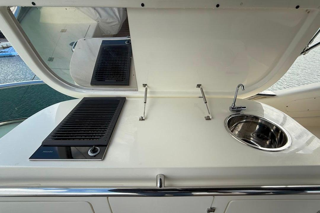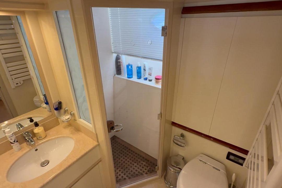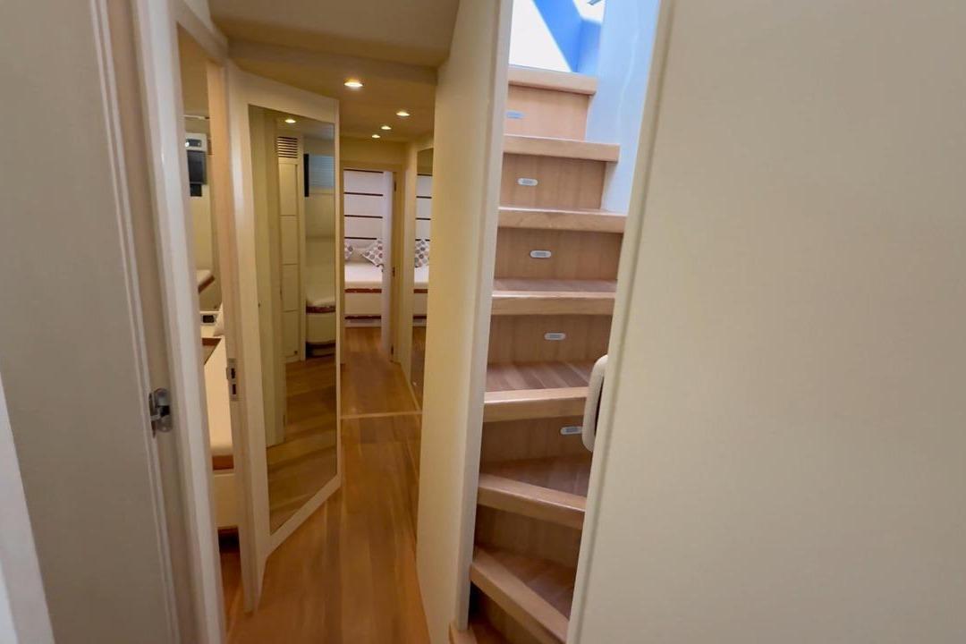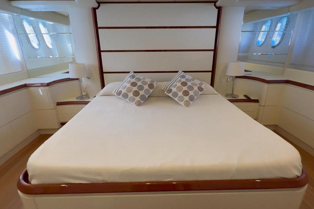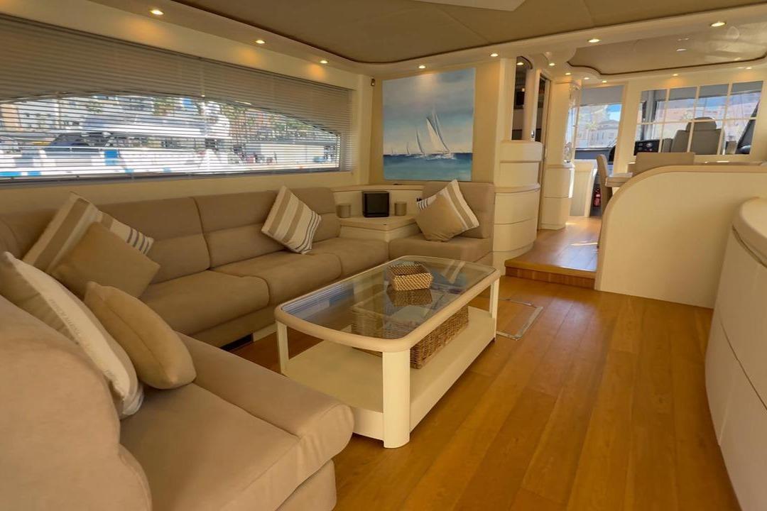 Astondoa 72 GLX con flybirdge, elegante, luminoso y de excelentes prestaciones. Cuenta con unos interiores modernos, su refit interior fue realizado recientemente en Marbella, dotando a la embarcación de una luminosidad y unos diseños renovados en 2025. Está autorizado para 12 personas/invitados en day charter + 2 personas de tripulación y es capaz de acomodar a 8 invitados/personas pernoctando, en sus cuatro camarotes: 1 Master con vestidor, 1 vip + 2 twin, todos con baño ensuite.