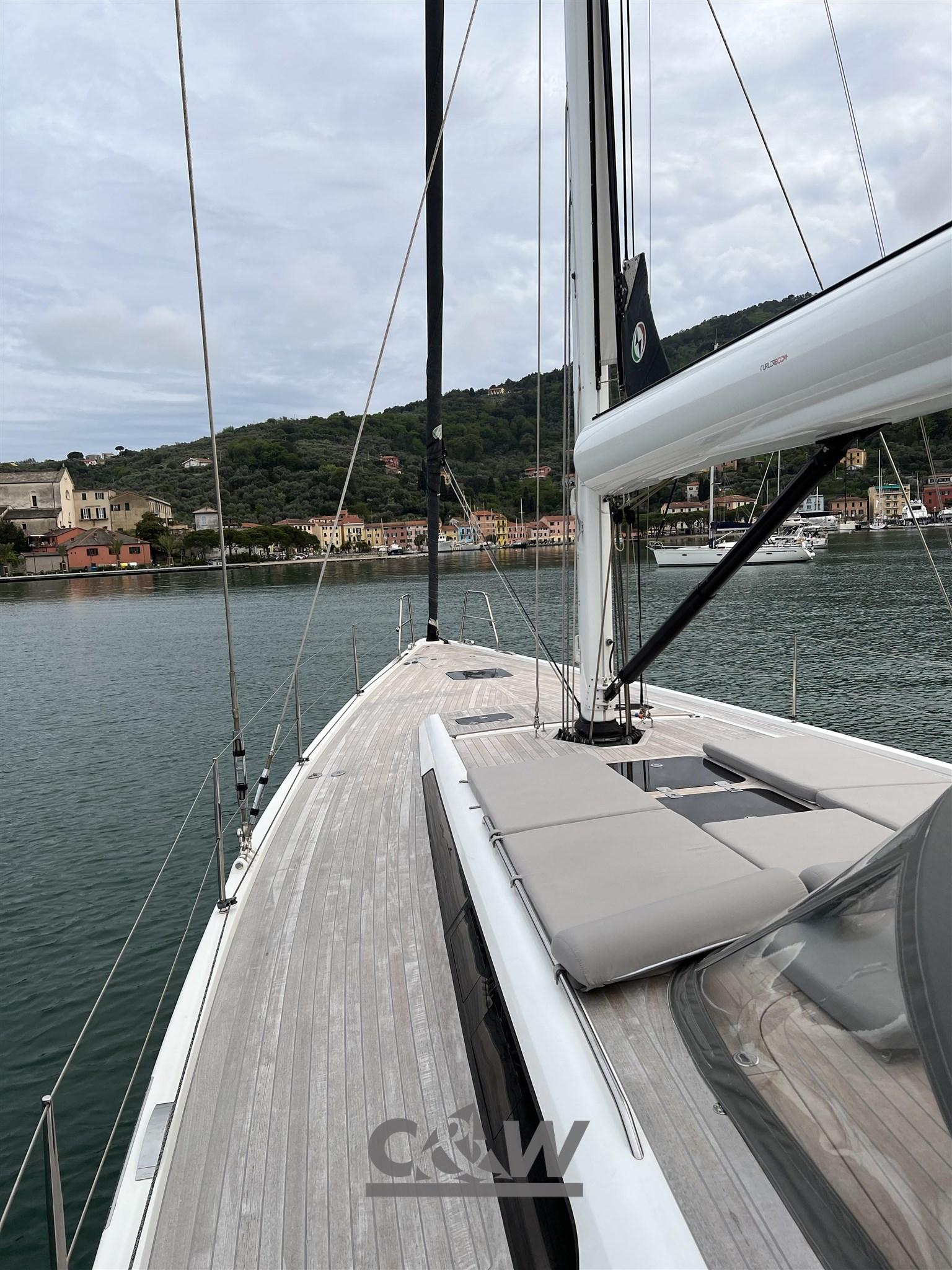 Mainsail (Banks anno 2025), Spinnaker (A2 North Sails), Jib (Banks 2020), Jib Furling System (Harken), Boom furler (Furlerboom), Rod Kicker (idraulico).