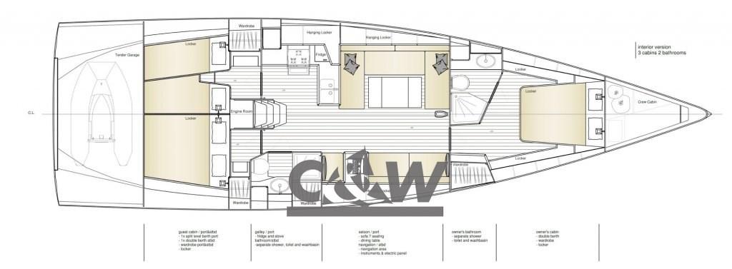 Three cabins, two bathrooms, air conditioning, watermaker, furling mainsail on the boom (year 2025)