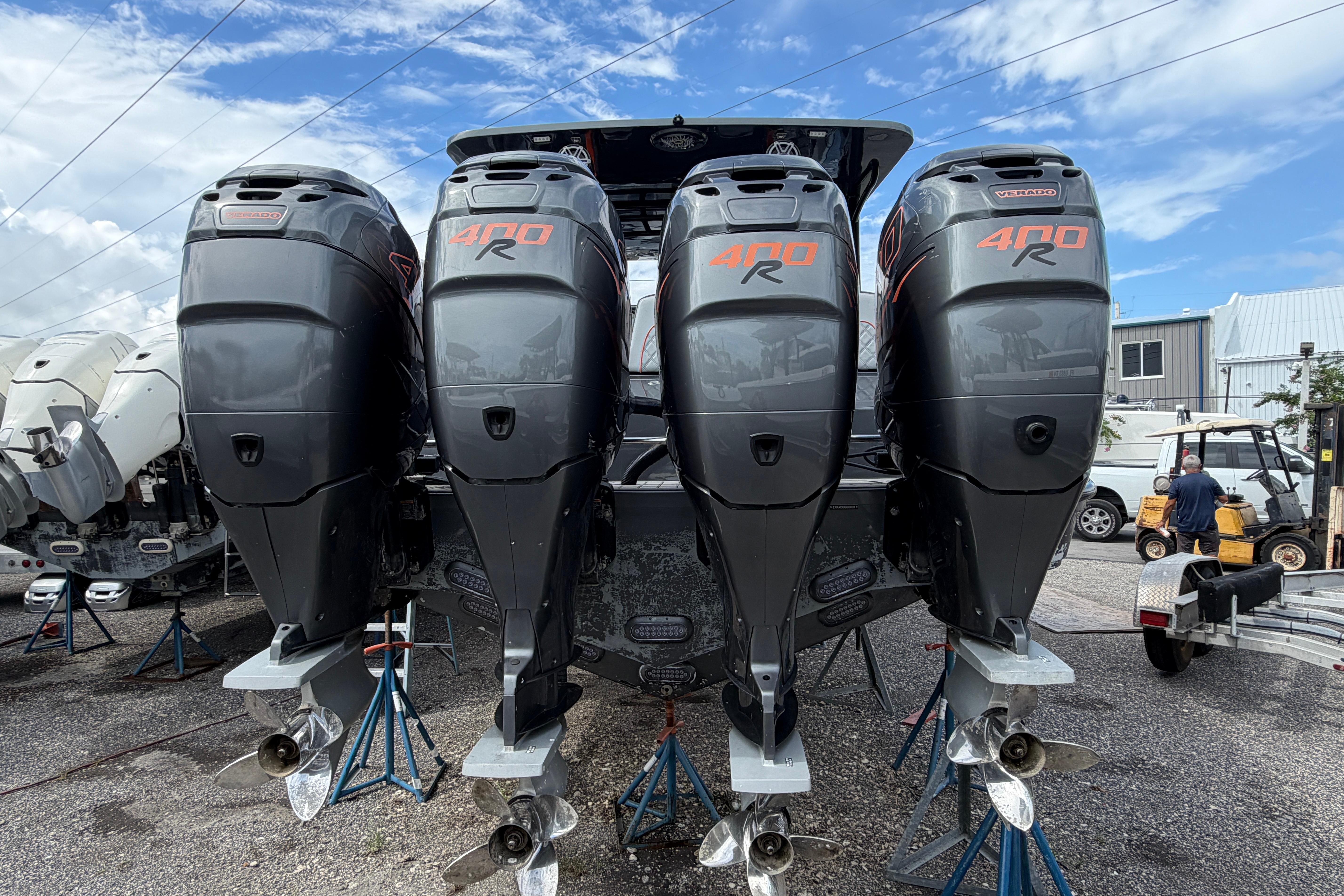 - Built for entertaining: An aft summer kitchen with a sink, built-in refrigerators, and counter space makes entertaining easy. A premium JL audio sound system with numerous speakers and subwoofers ensures a party atmosphere wherever you go.