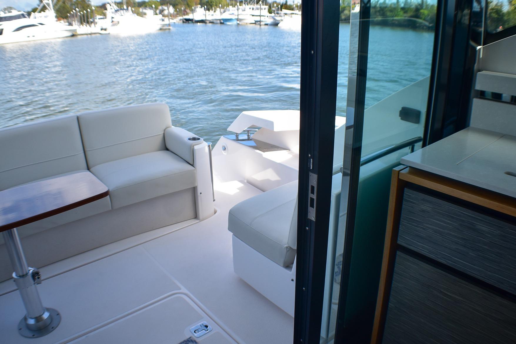 Large aft galley opening to the cockpit for seamless indoor/outdoor living