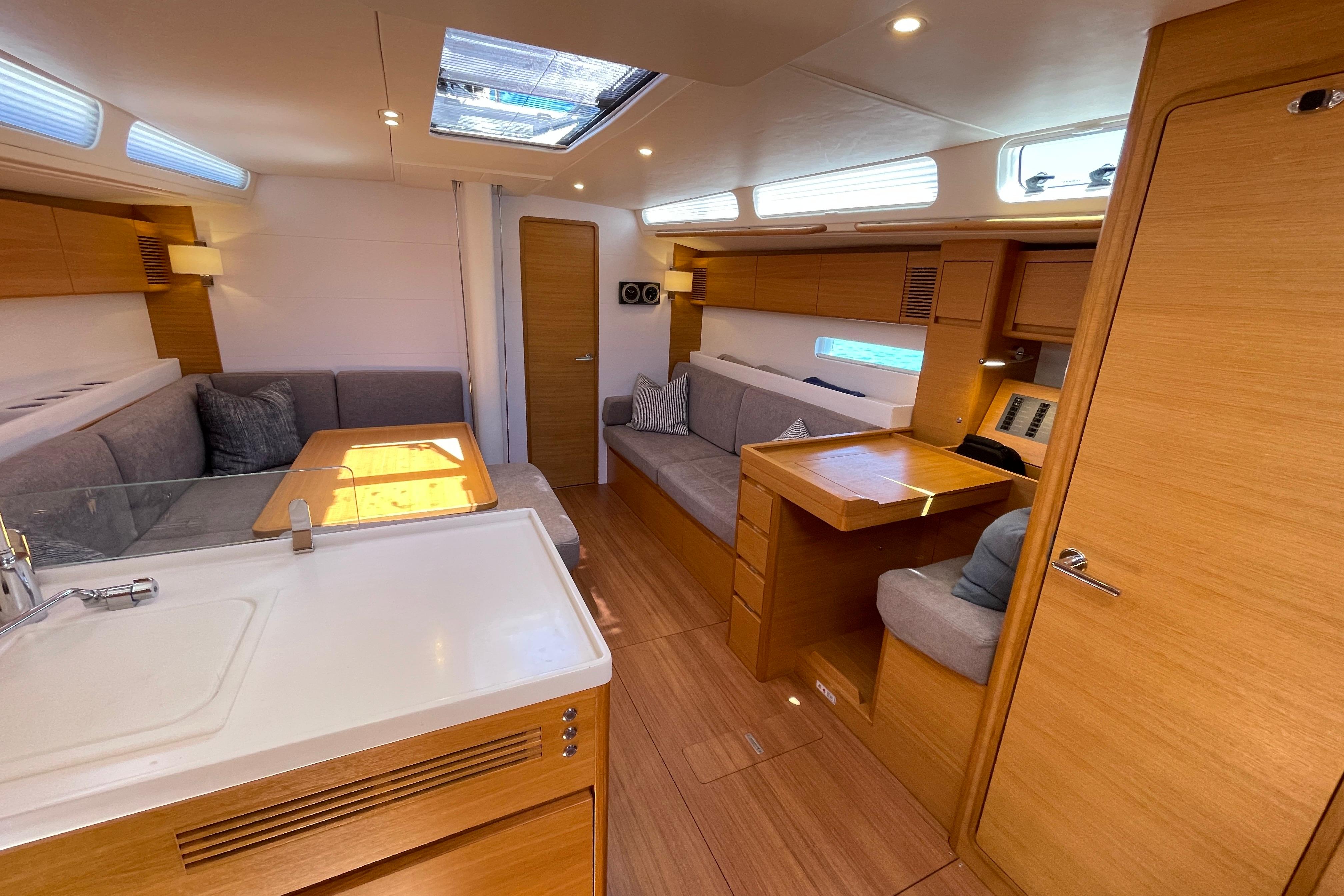 Wonderful example of the X-Yachts X4.9, boasting teak decks with grey caulking, park avenue boom for easy mainsail handling and a lovely bright interior in Nordic Oak and white surfaces. Also easy to handle with the re-wind winches fitted as primary winches.
