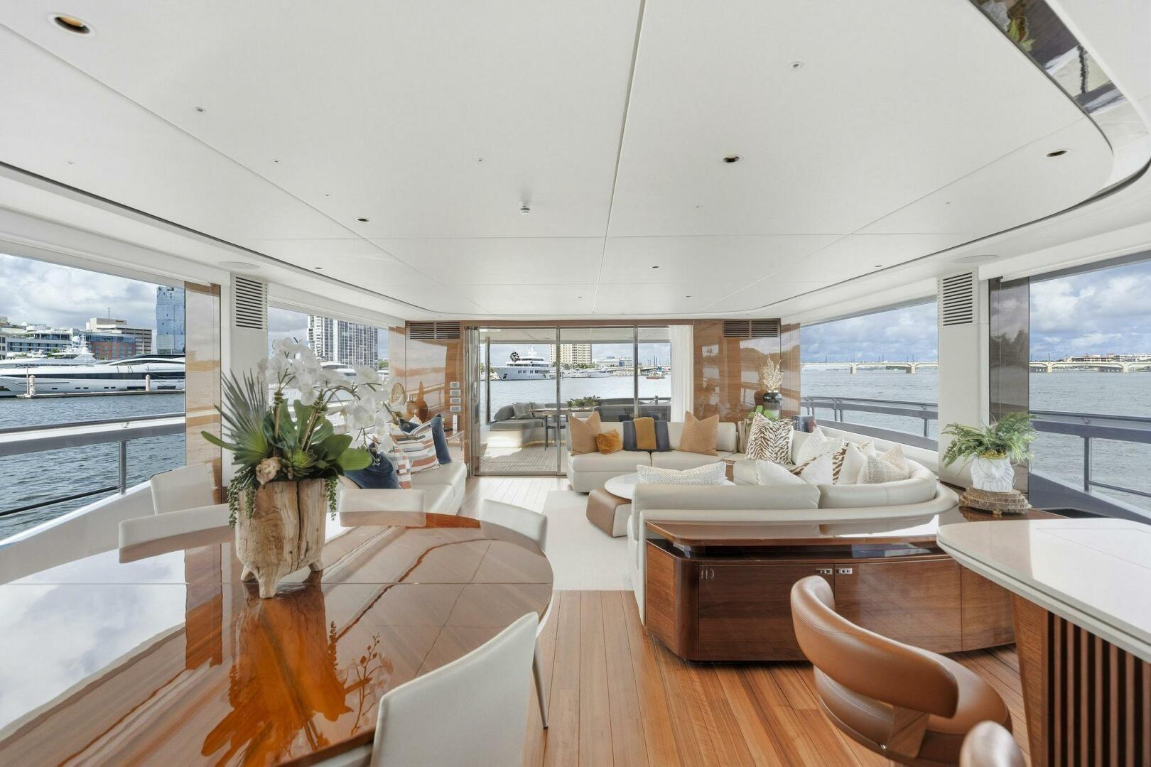 - Exterior: 43" hinge-down with Sunbright upgrade TVs (cockpit + flybridge)