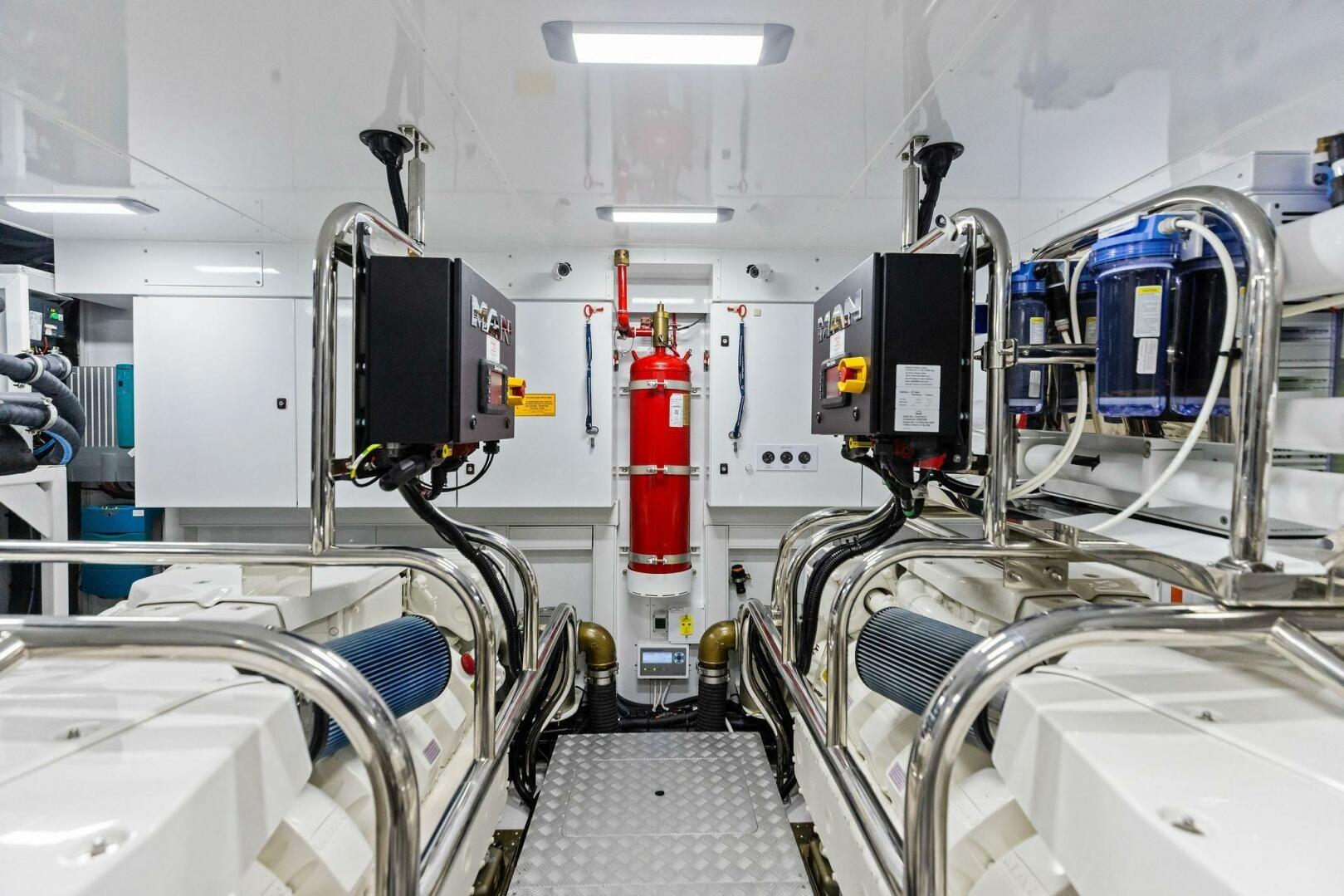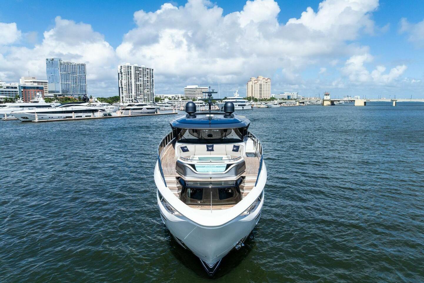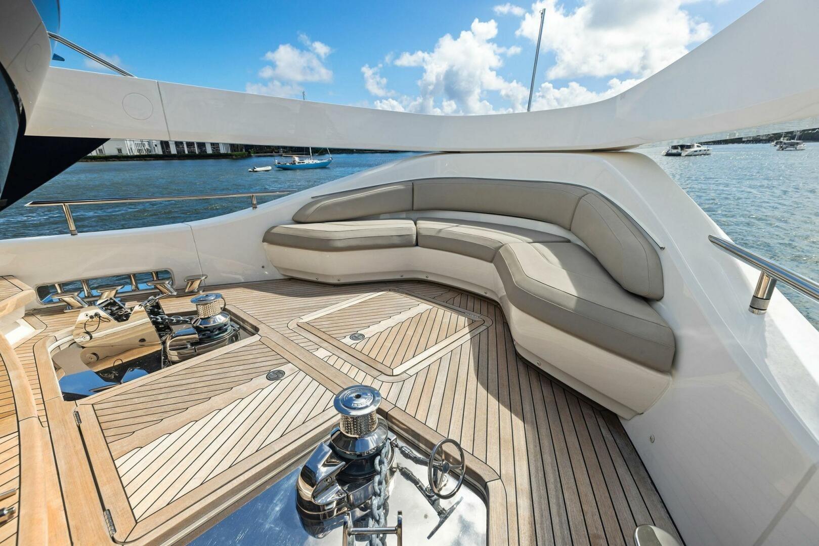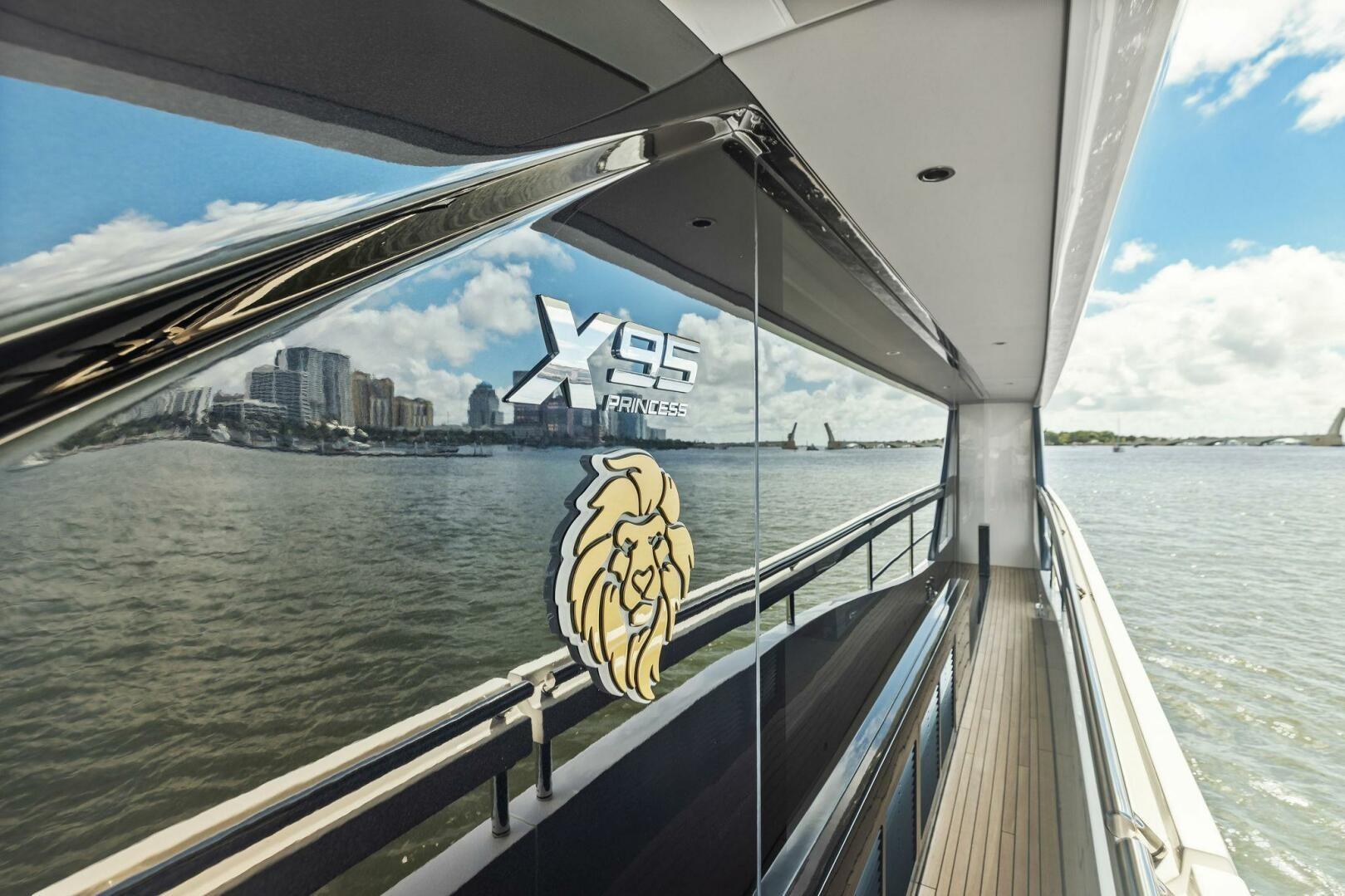 The 2023 Princess X95 "Lady Lion" is the ultimate luxury yacht, combining bold design, expansive interiors, and exceptional performance. Featuring five staterooms—including a forward main deck master—convertible cabins, and a redesigned beach club with crew accommodations, she offers unmatched comfort and versatility. Entertain in the salon, dining area, flybridge, or on deck with a foredeck spa, cockpit bar, and dual flybridge bars. Full teak decking, twin kedge anchors, side gates, an electric aft awning, and a 1,000 kg electro-hydraulic transformer platform enhance style and functionality.