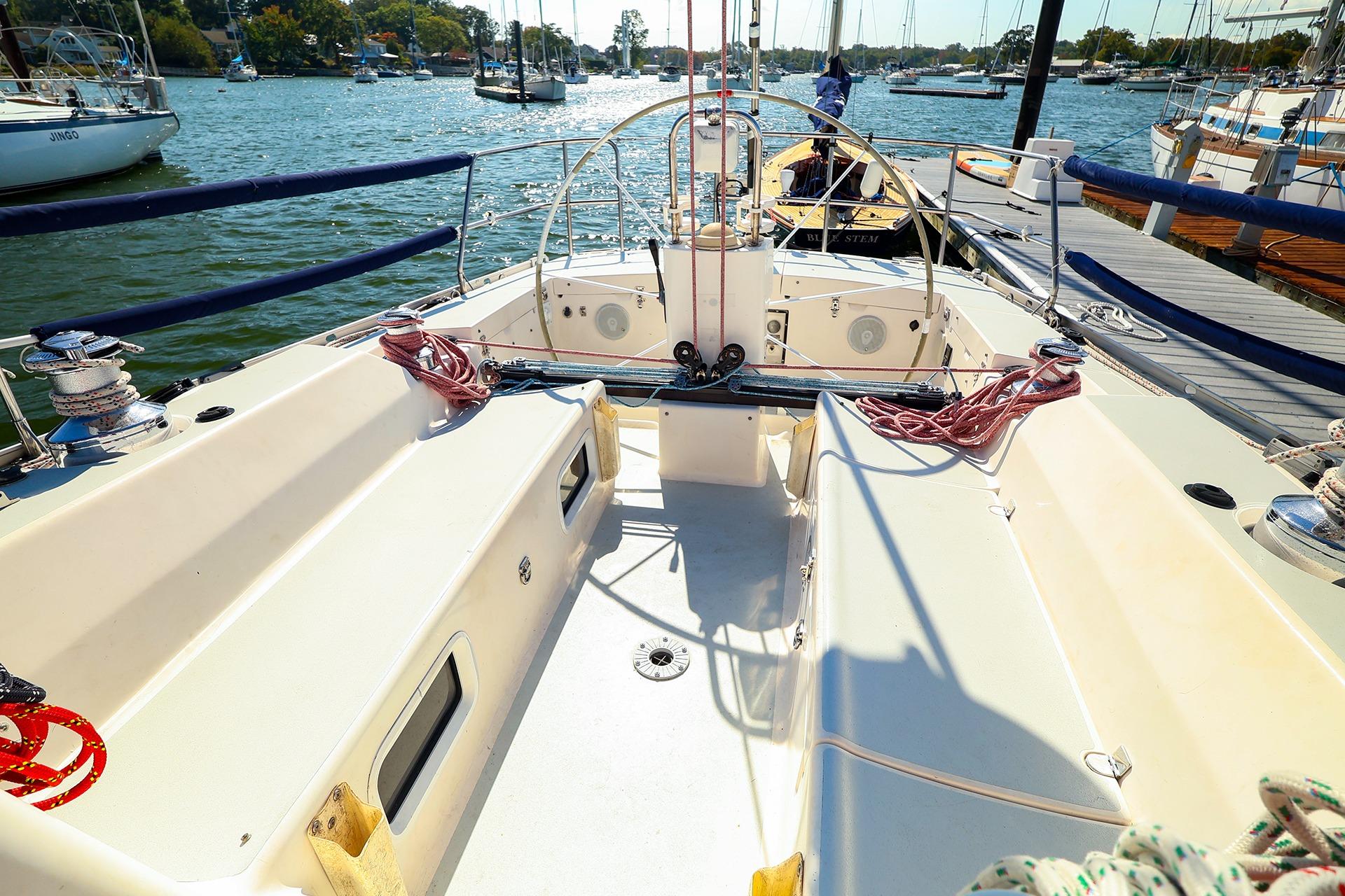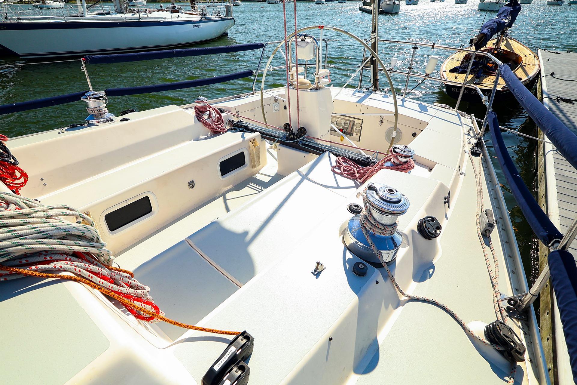 - Very little gelcoat crazing on deck. When I bought the boat in 2014 I had the entire deck hardware removed including all ports etc. and the entire deck, cabin house, cockpit etc. ground back to the glass and then re-gelcoated. This was a 7 months exercise!