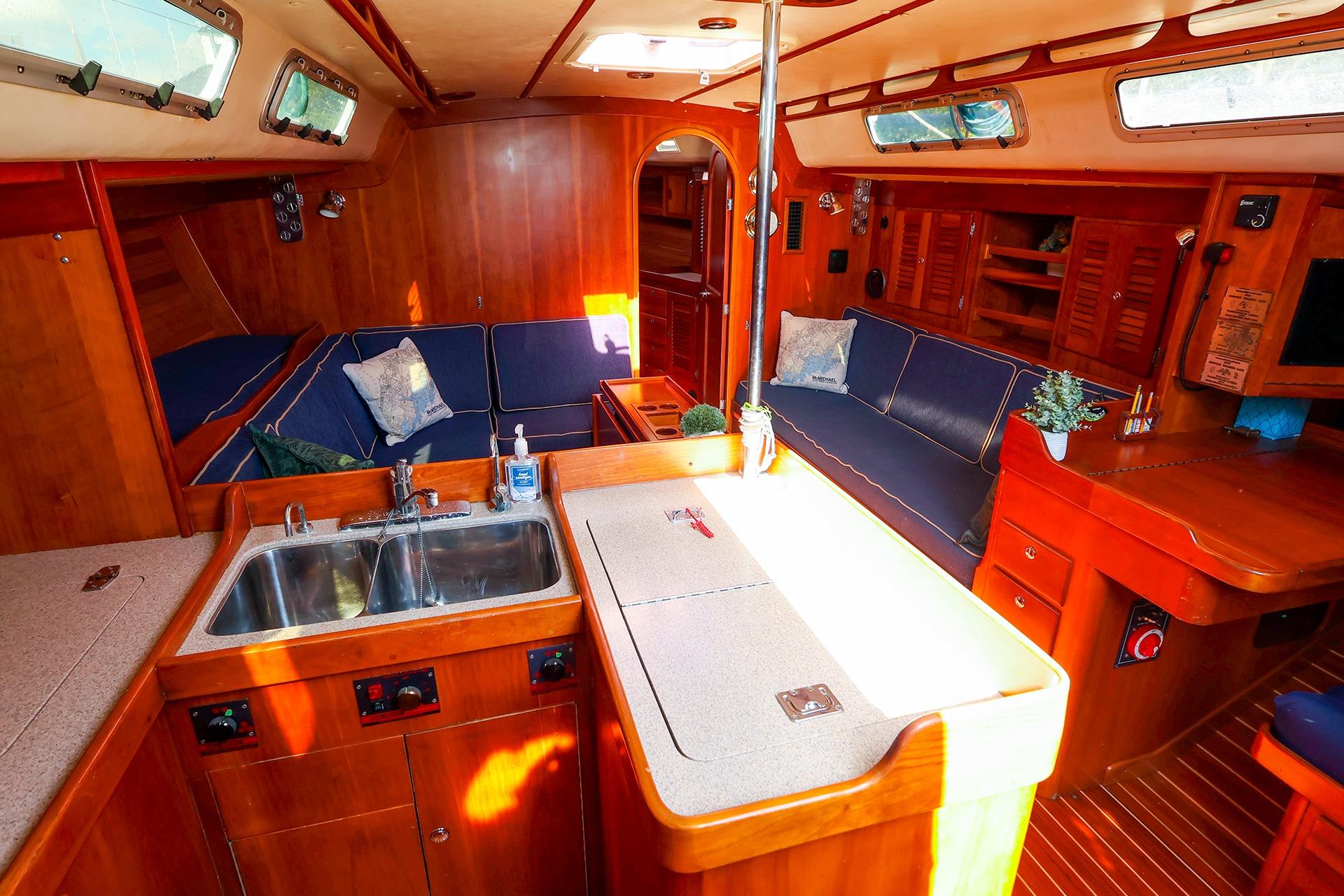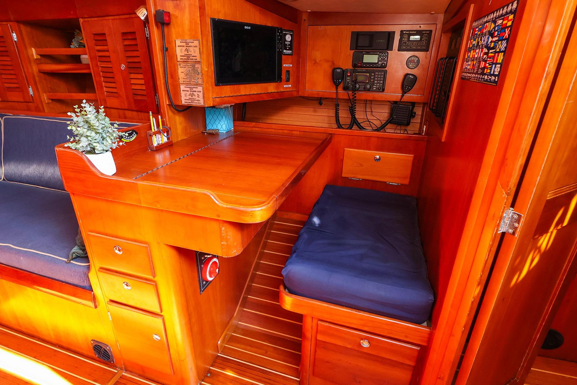Elegant varnished cherry interior – preserved from the elements belowdecks