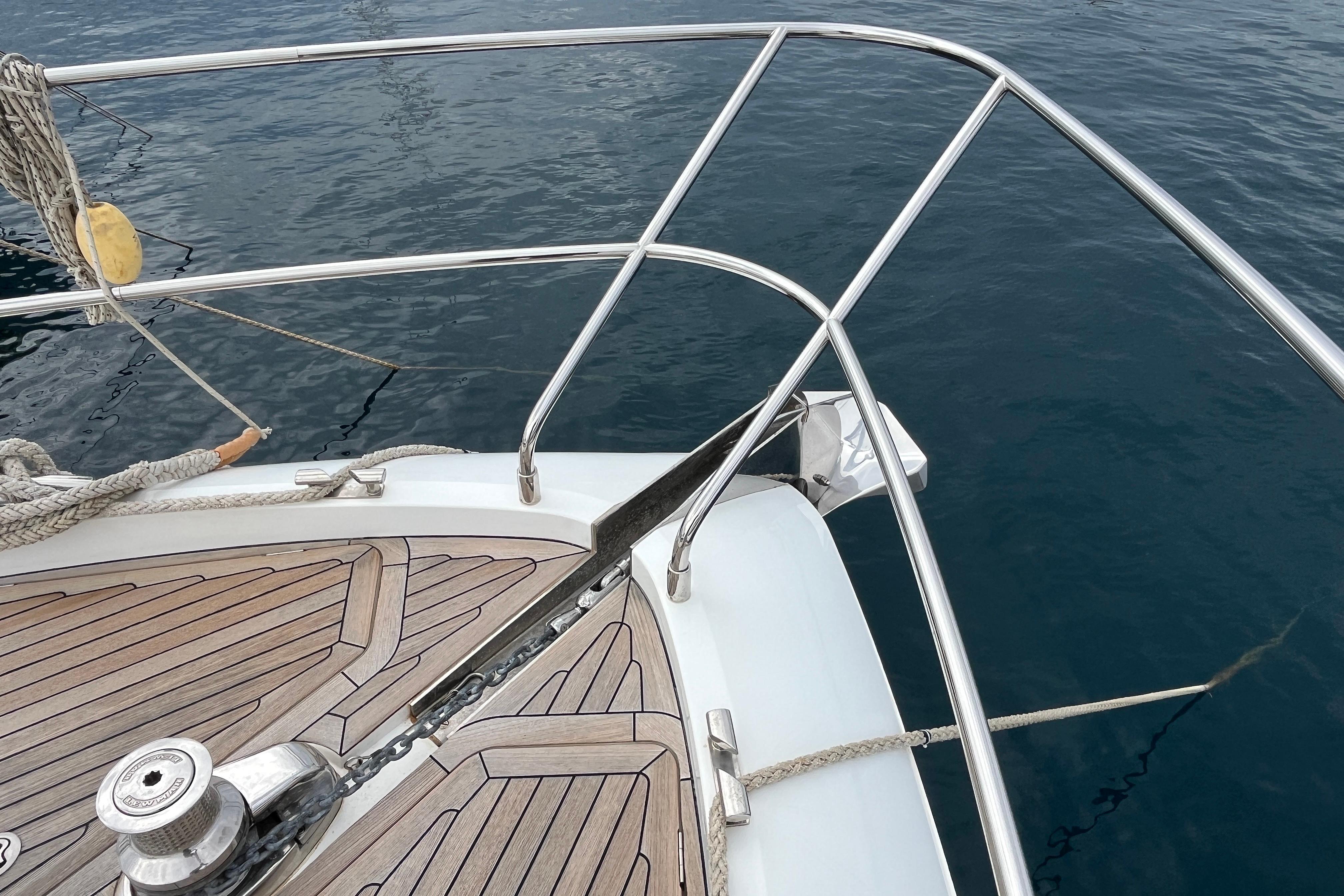 The luxurious accommodation includes four well-appointed guest cabins and a separate crew cabin for two, complemented by four heads—making it ideal for hosting family and friends in absolute comfort. For ultimate peace of mind, the yacht is also equipped with a hydraulic fin stabiliser for added convenience both at anchor and underway.