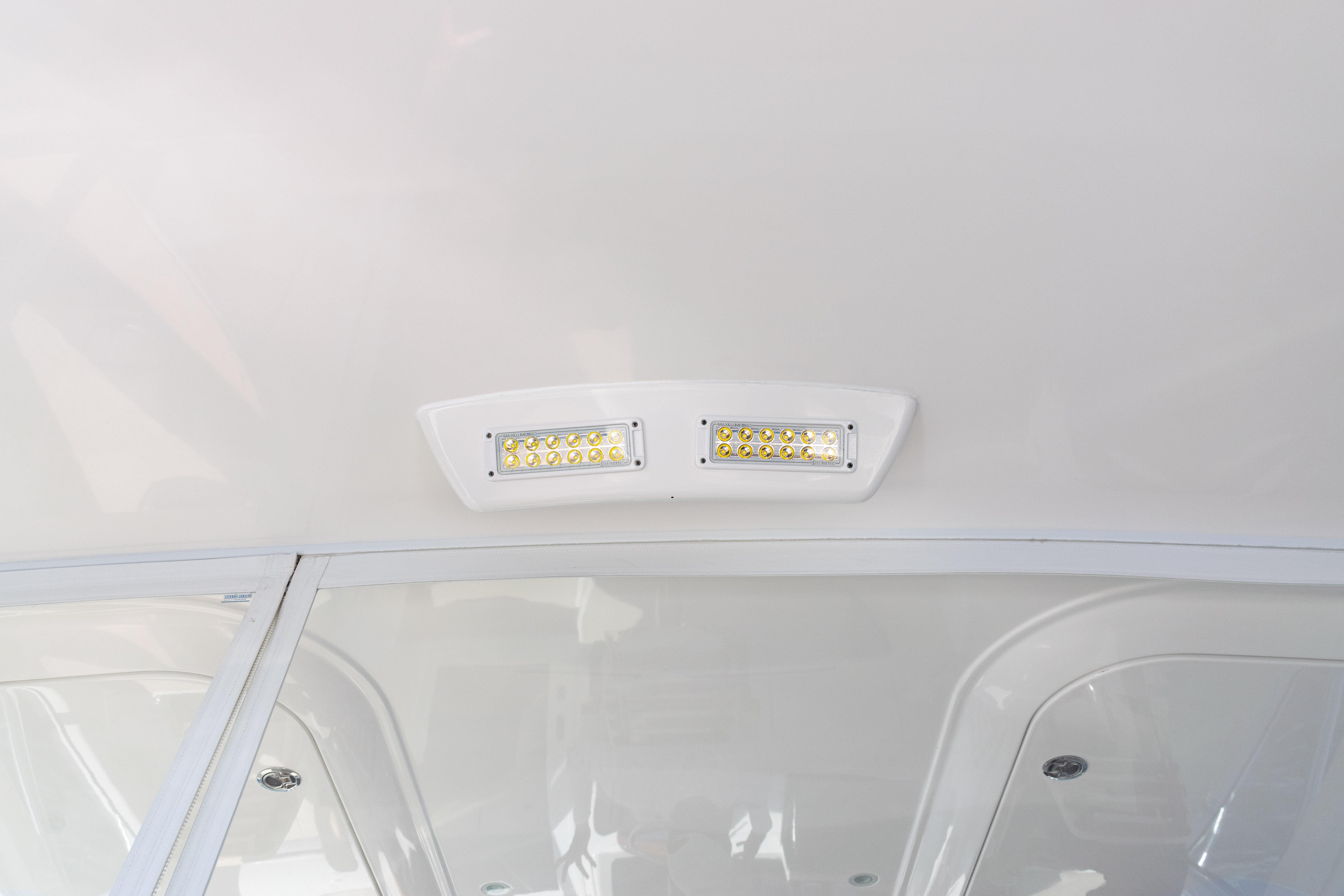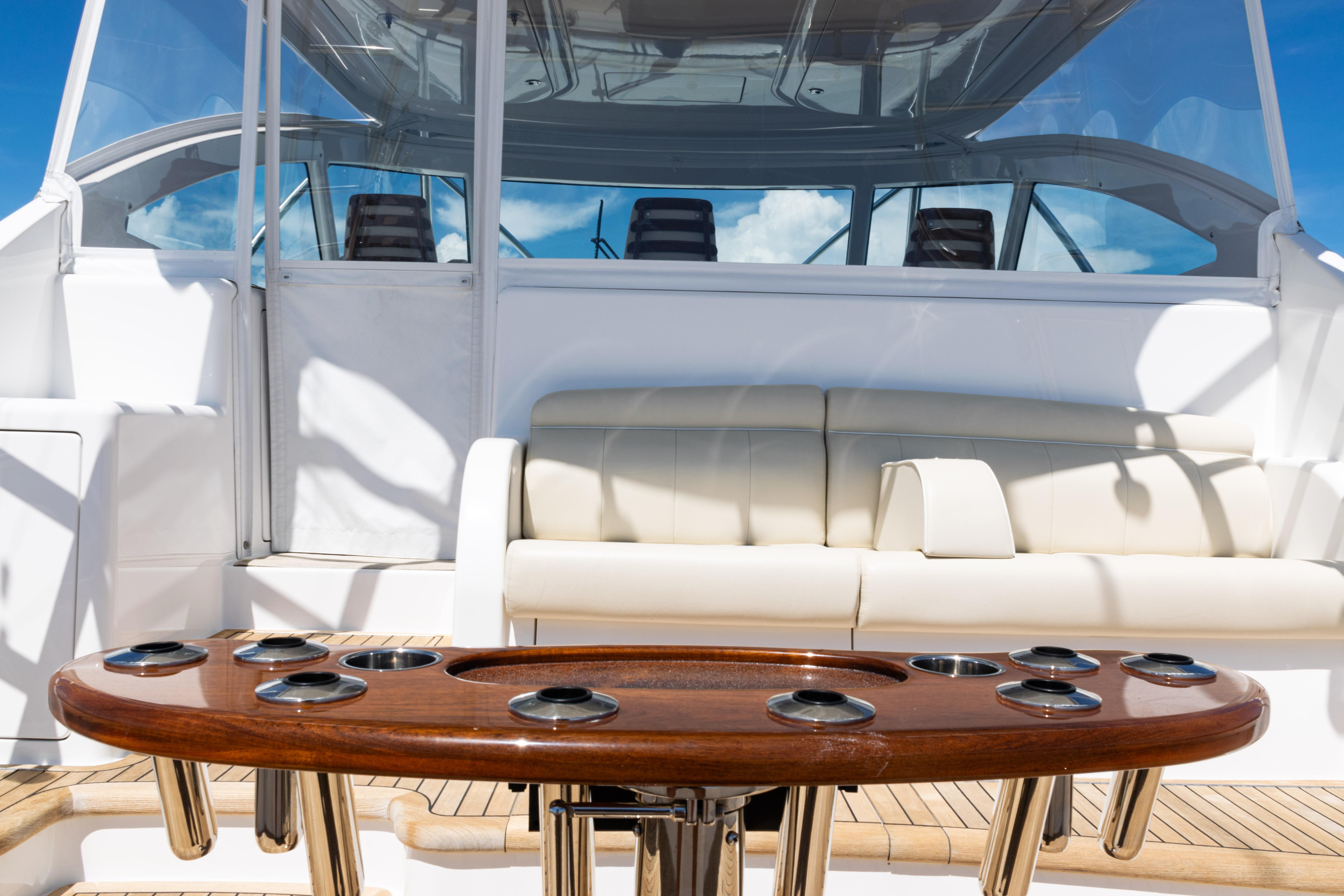 The Costa Clear enclosure and air conditioning keep you cool and comfortable on the spacious command deck, which includes three adjustable pedestal seats.