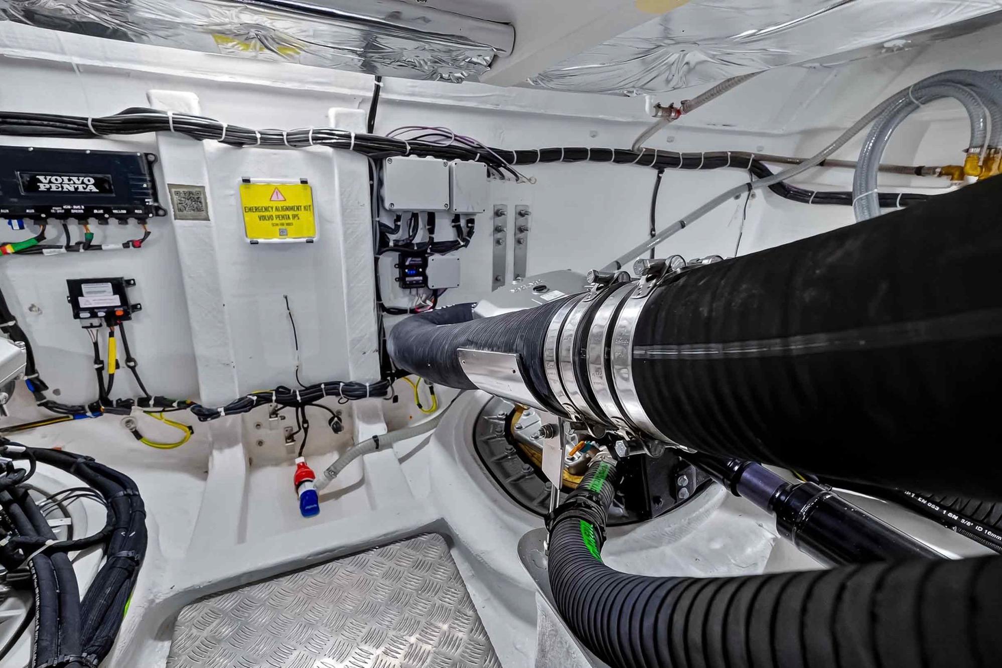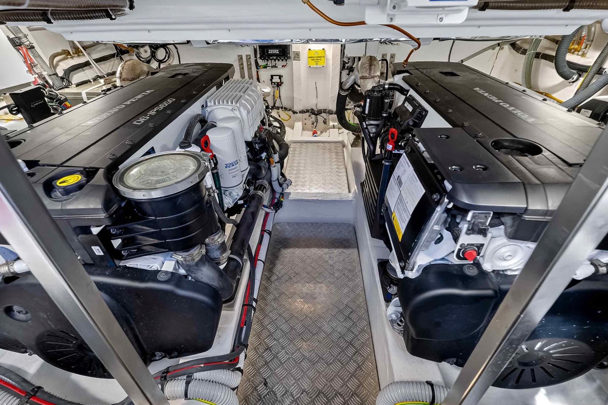 Seaduction boasts an impressive list of premium features, including the most powerful engine package available for this model, a SeaKeeper gyro stabilizer, a sleek T-Top with Starlink connectivity, a hydraulic swim platform, and more. Below deck, two spacious cabins comfortably accommodate up to four guests for overnight stays, making this the perfect blend of performance, luxury, and comfort.