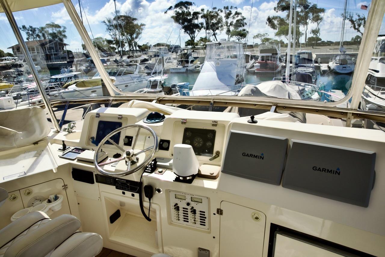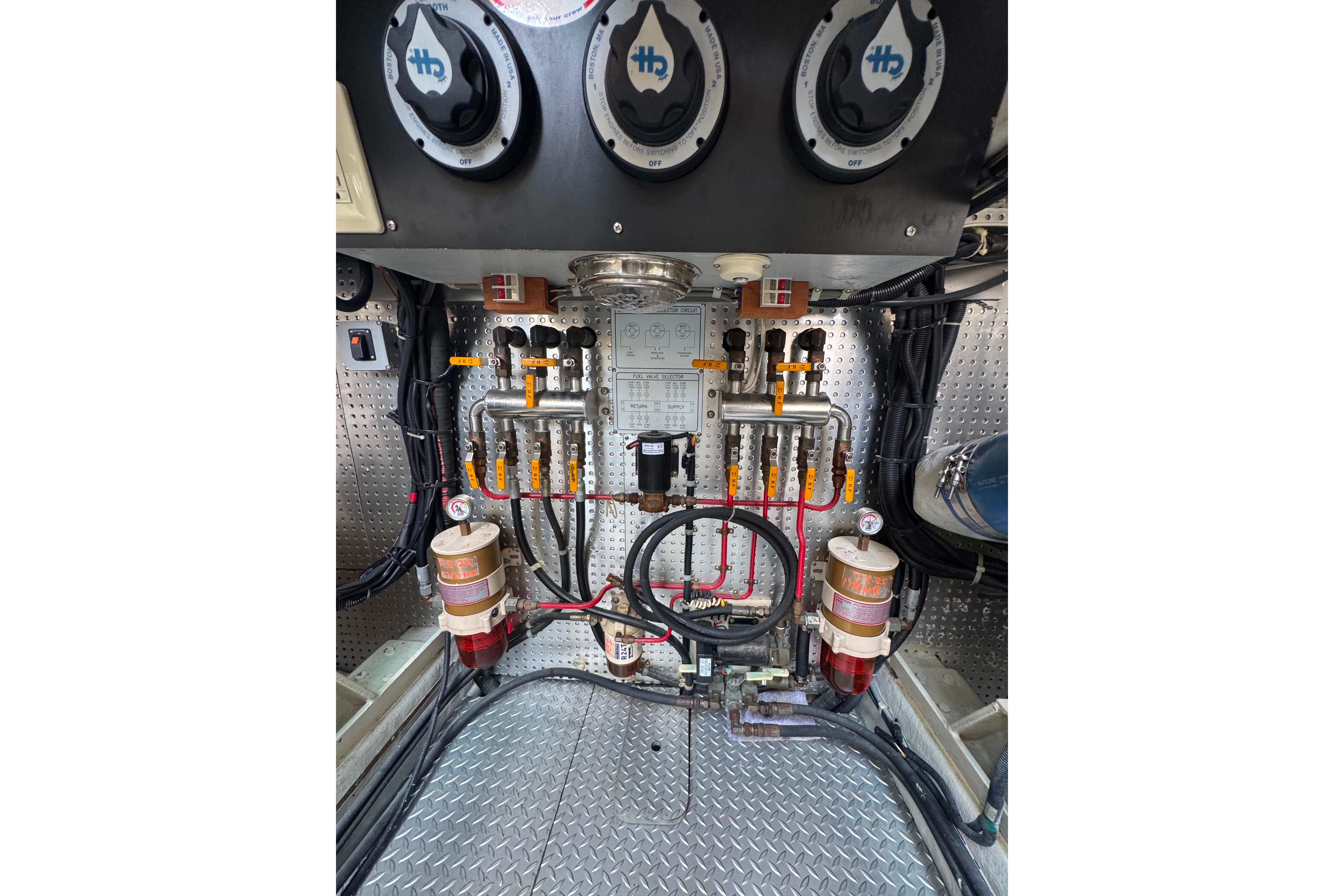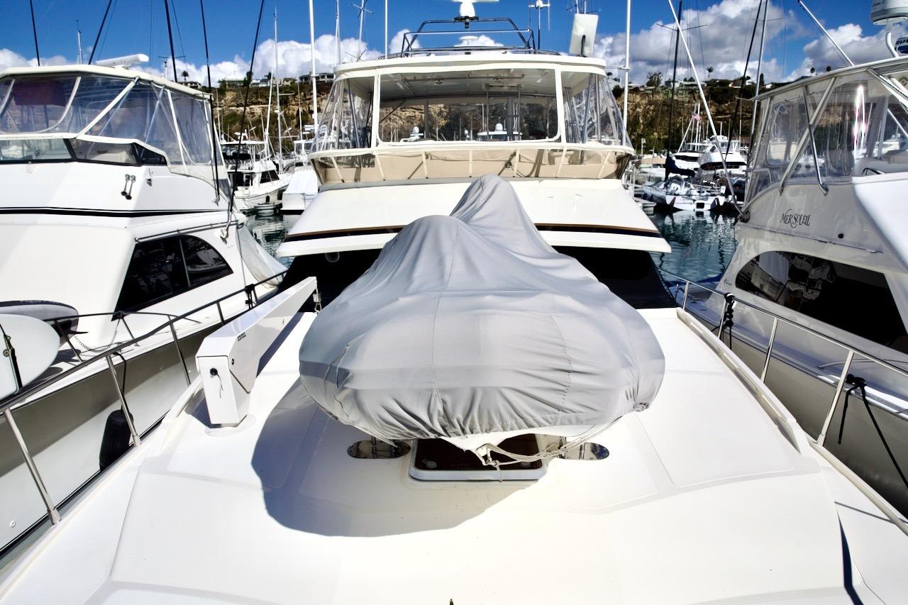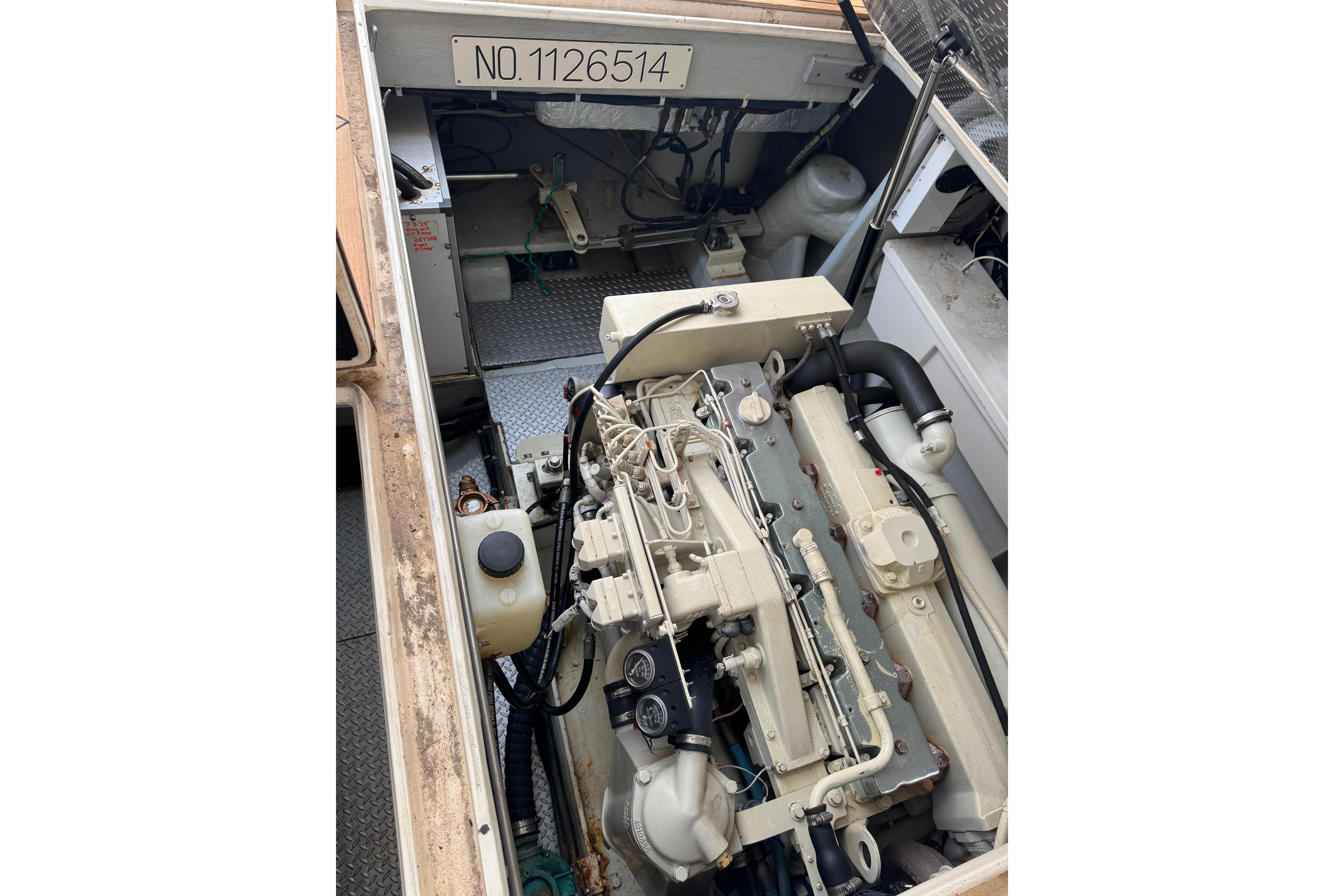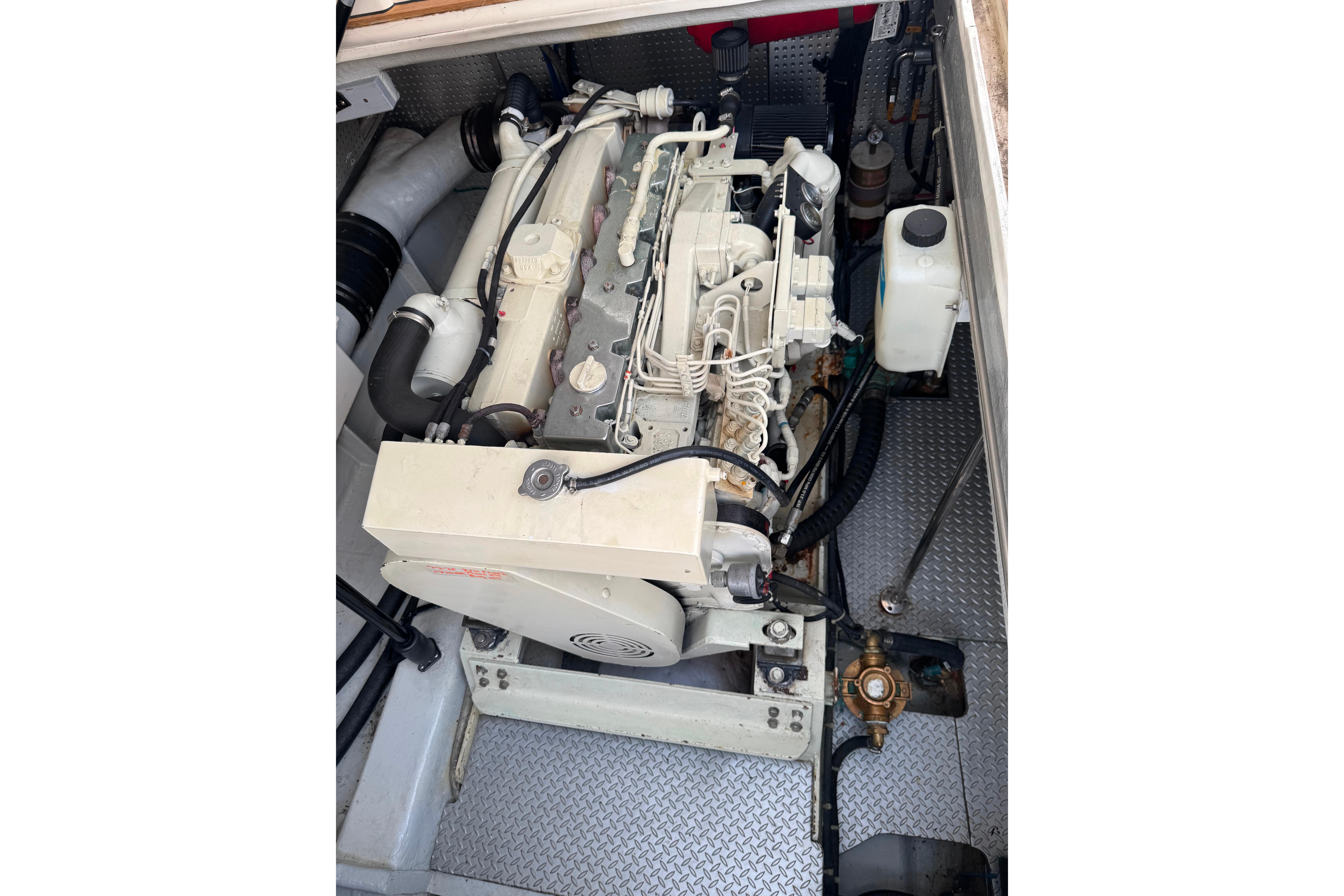 Constructed with a solid fiberglass hull, she delivers a smooth, stable ride and is powered by twin Cummins 6CTA8.3 inboard engines, each producing 480 hp. With only 1,710 hours, these engines offer both power and efficiency for years of reliable cruising.