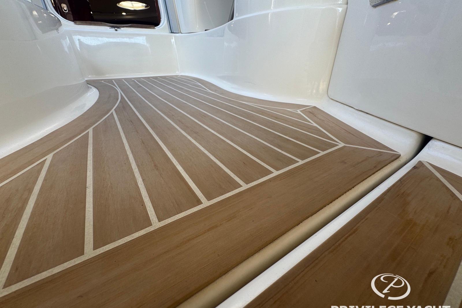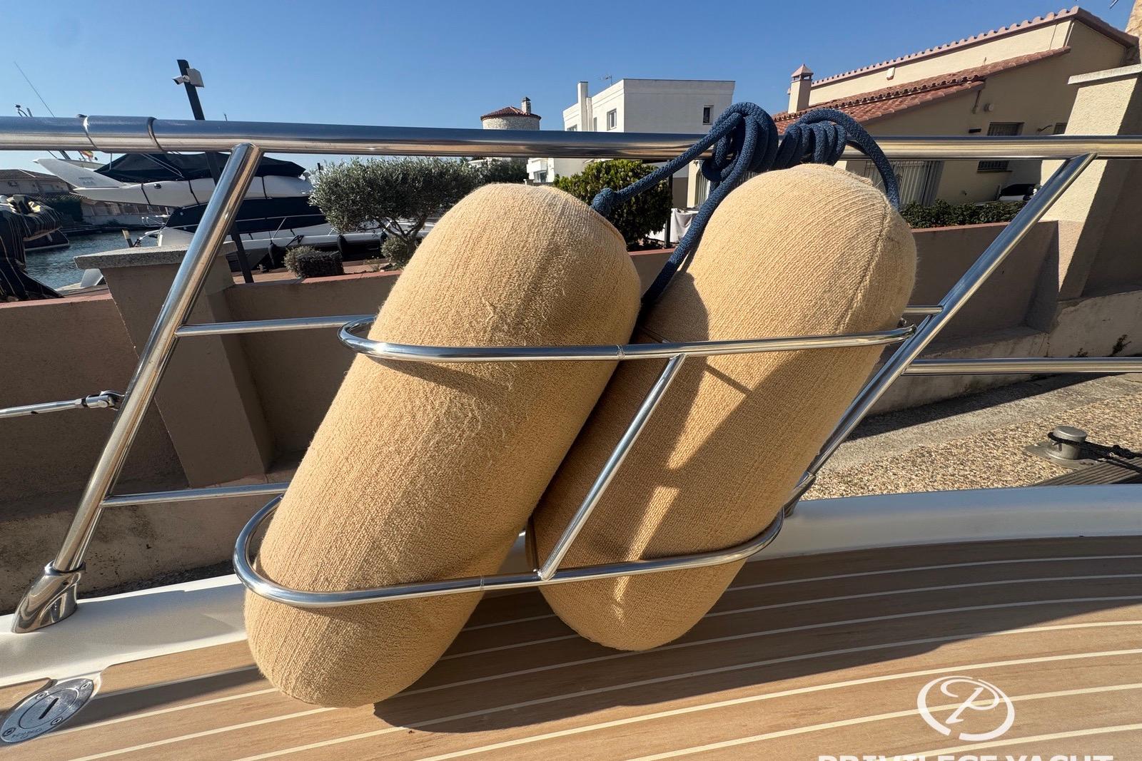Basta con acercarse para percibirlo: los inox relucen, el gelcoat brilla, las maderas interiores están intactas, sin rayas ni marcas de agua, y hasta los embellecedores de las luces empotradas conservan su lustre original.
