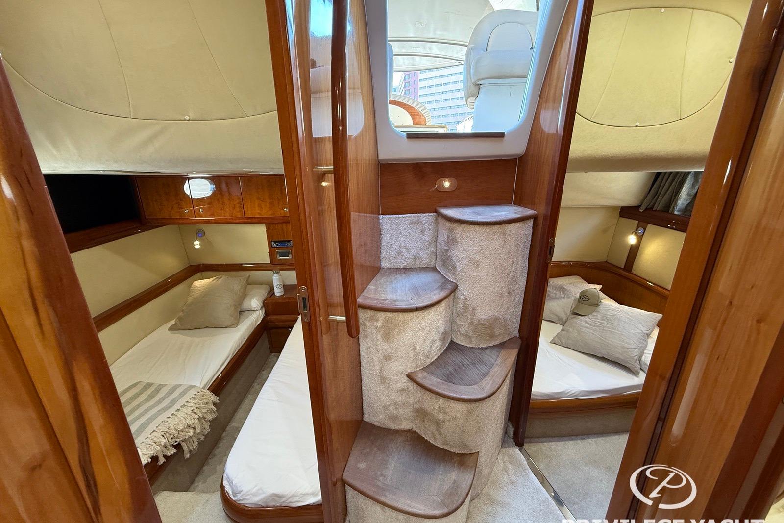 Su actual propietario, plenamente consciente de lo que implica mantener un barco de 20 años, decidió desde el inicio prevenir antes que reparar. Nada más adquirirla, mandó sacar los motores y también los depósitos de combustible, con el fin de limpiarlos y revisarlos. Aprovechó la ocasión para comprobar todos los sistemas eléctricos, sustituir o repasar cada pieza susceptible de desgaste y rehacer el aislamiento de la sala de máquinas.