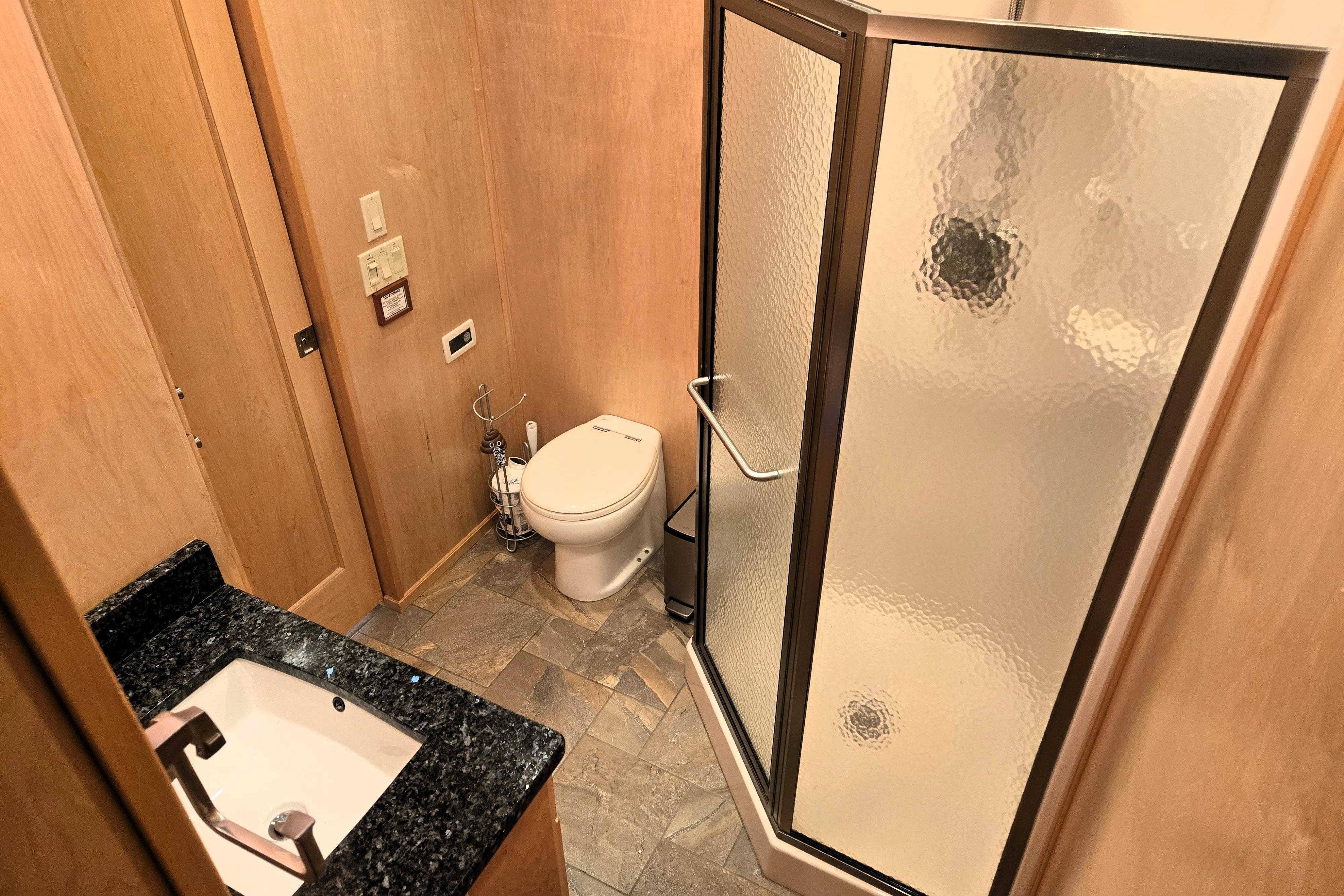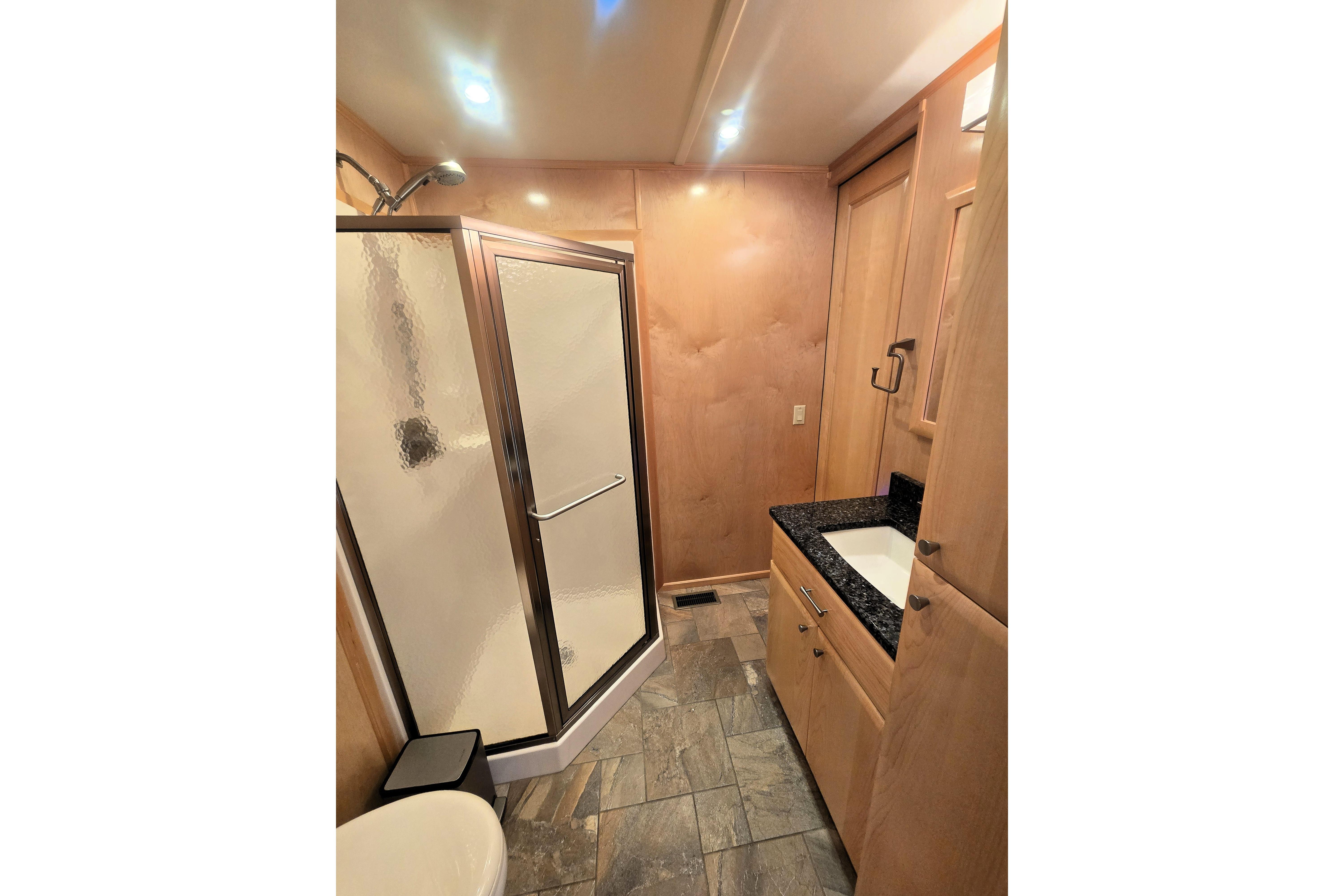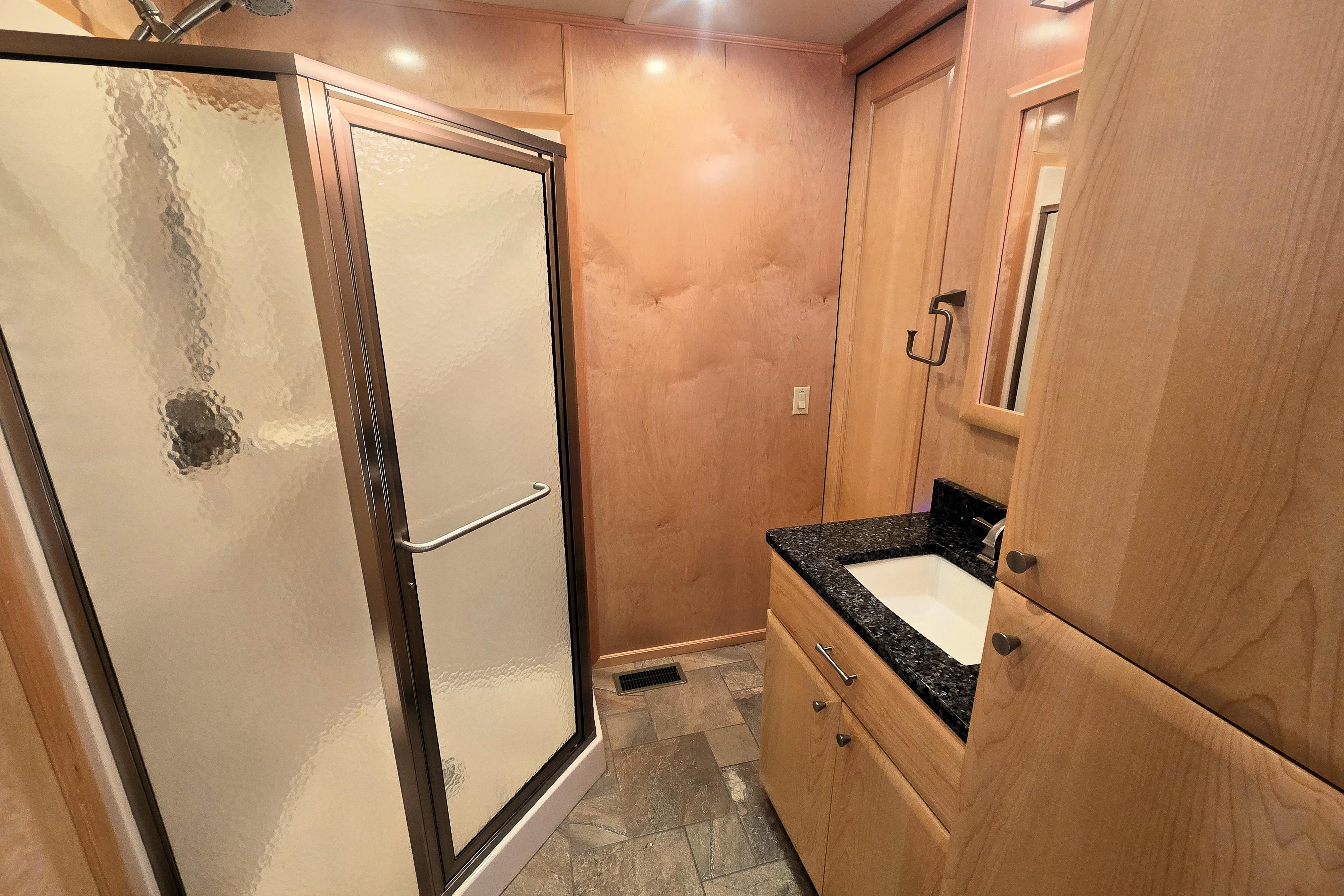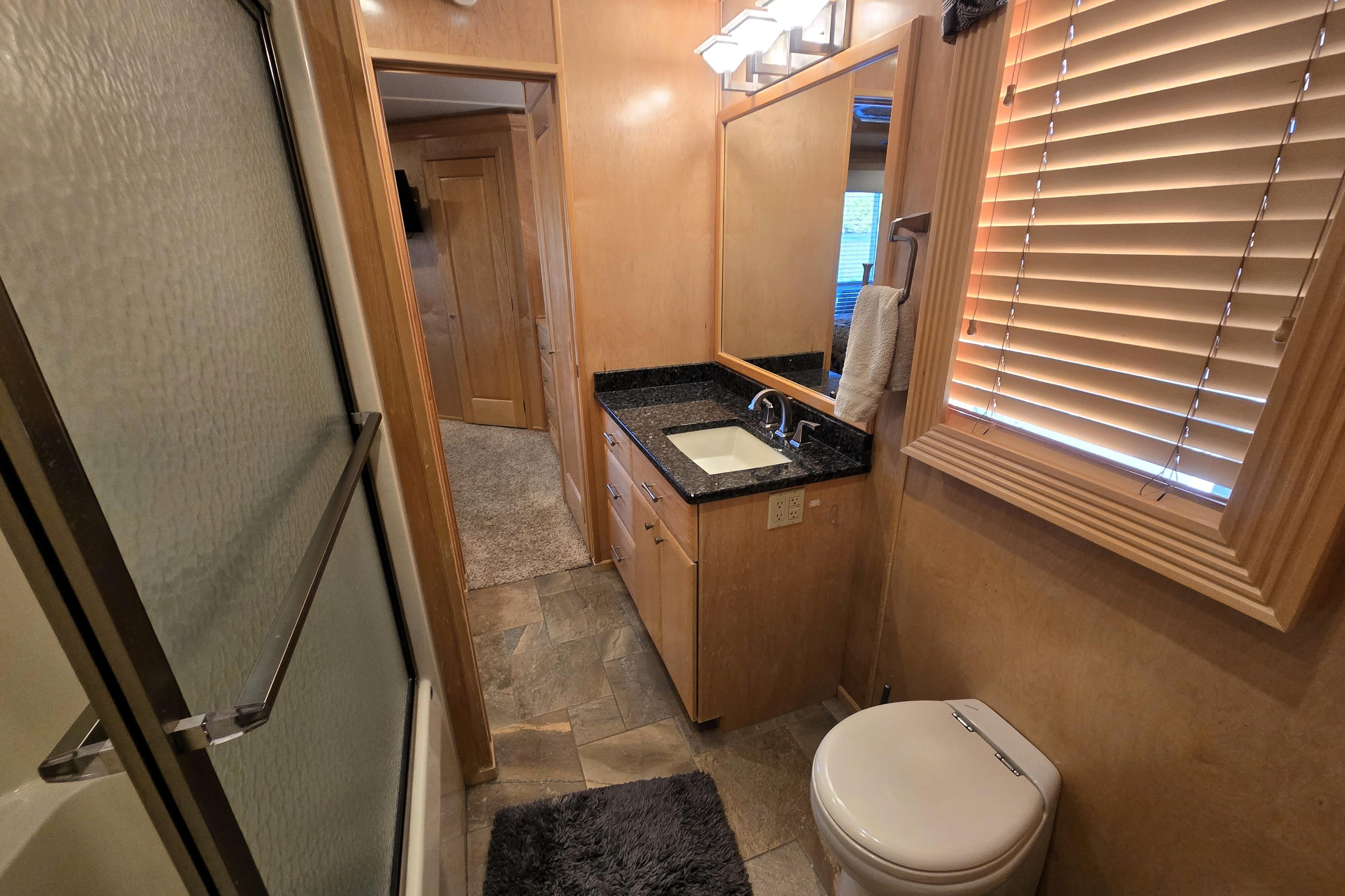 "Reel Lucky" has a 4 stateroom, 2 full head layout. The Master features an ensuite head with walk in shower and jacuzzi tub and a king size walkaround bed. An oversized window on the stern gives you a perfect place to watch the sunrise without getting out of bed to do it. The 2nd Stateroom has a queen bed and a private entry to the 2nd head. The head has a large walk-in shower and ample vanity space. The 3rd stateroom is down a short flight of steps from the salon and has a full-size bed and ample storage. The 4th stateroom is down steps coming from the main passageway. It is currently set up as a storage room.
