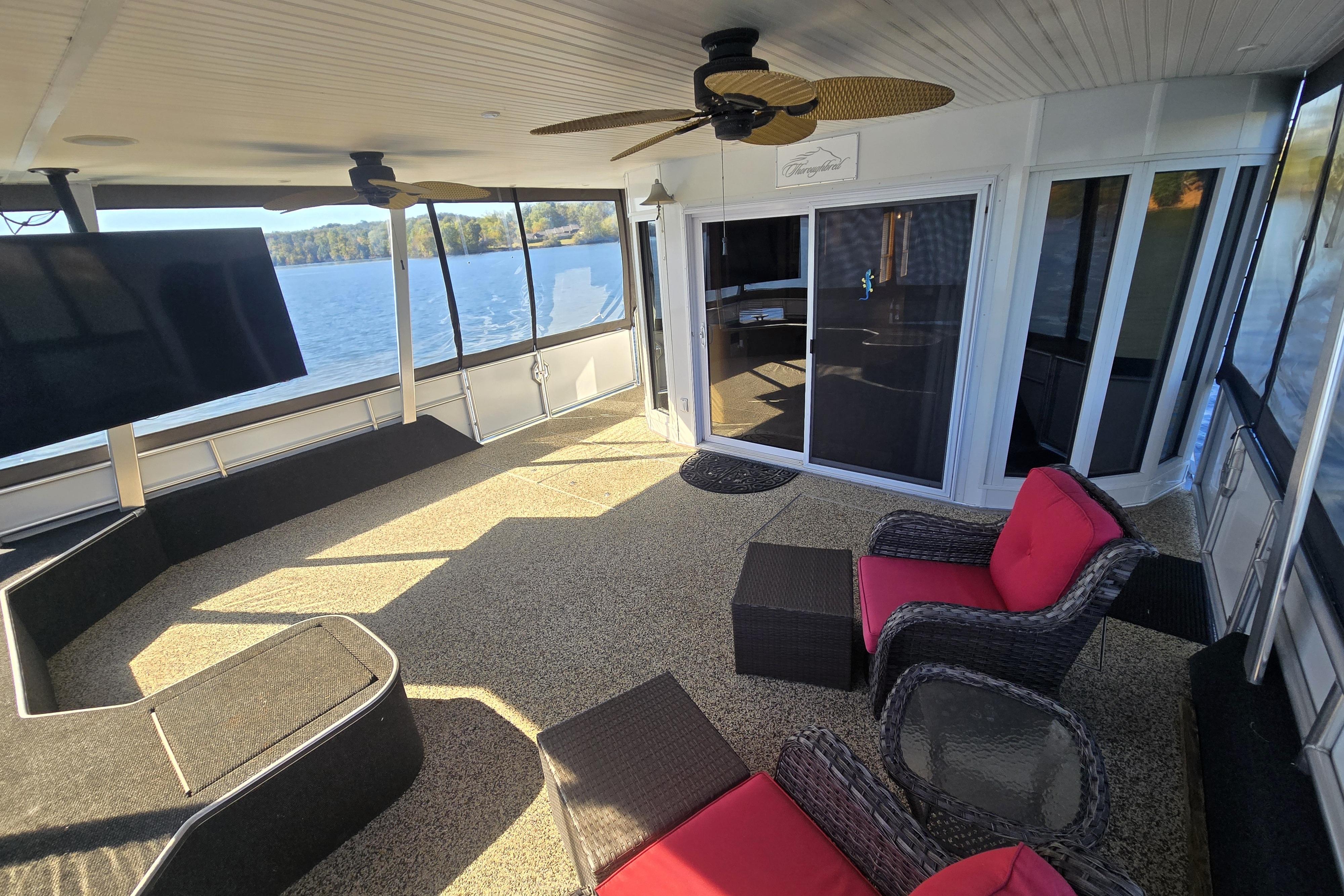 Introducing the "Reel Lucky," a stunning 2013 Thoroughbred houseboat that embodies both style and functionality. With an impressive overall length of 80 feet and an 18-foot beam, this vessel offers ample space for relaxation and entertainment. This is a true luxury vessel that was custom ordered by the current owners in 2013 and has remained here on local waters ever since. She's currently berthed on beautiful Tellico Lake and the slip is transferable to the new owner. It's also only a few miles to the Tennessee River so you have plenty of options for re-location.