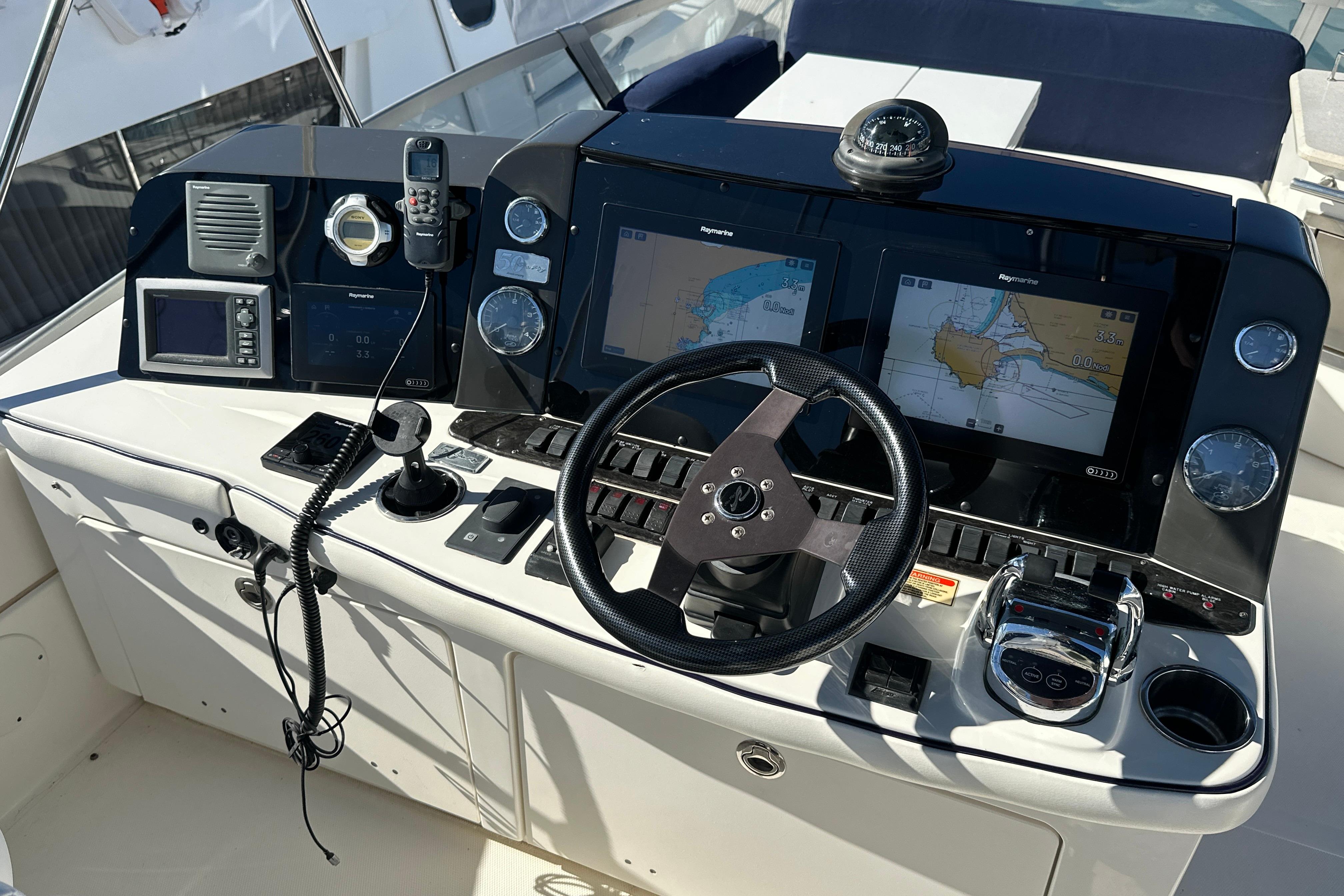 Autopilota Raymarine, Doppio plotter Axiom, con Radar, GPS e Dati dei motori, Smartcraft Mercruiser, Vhf Raymarine