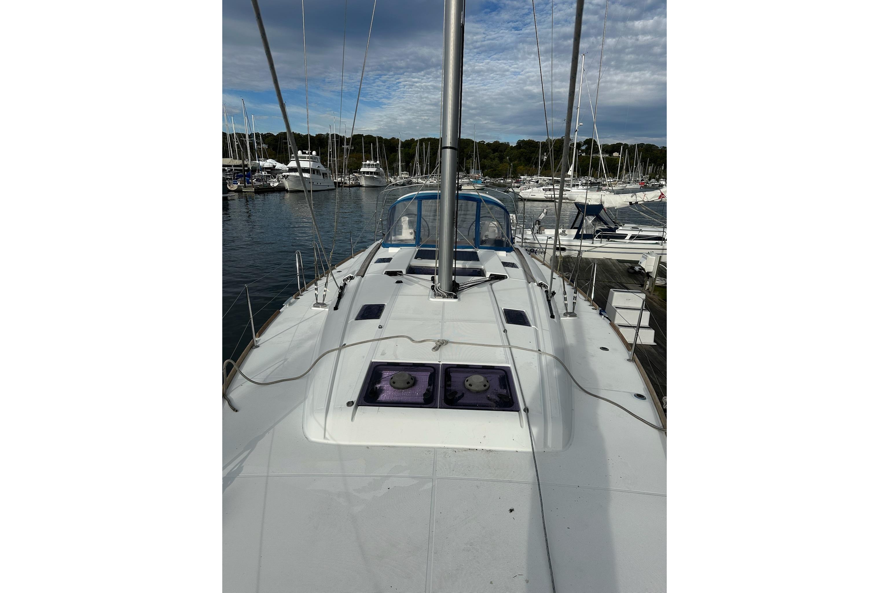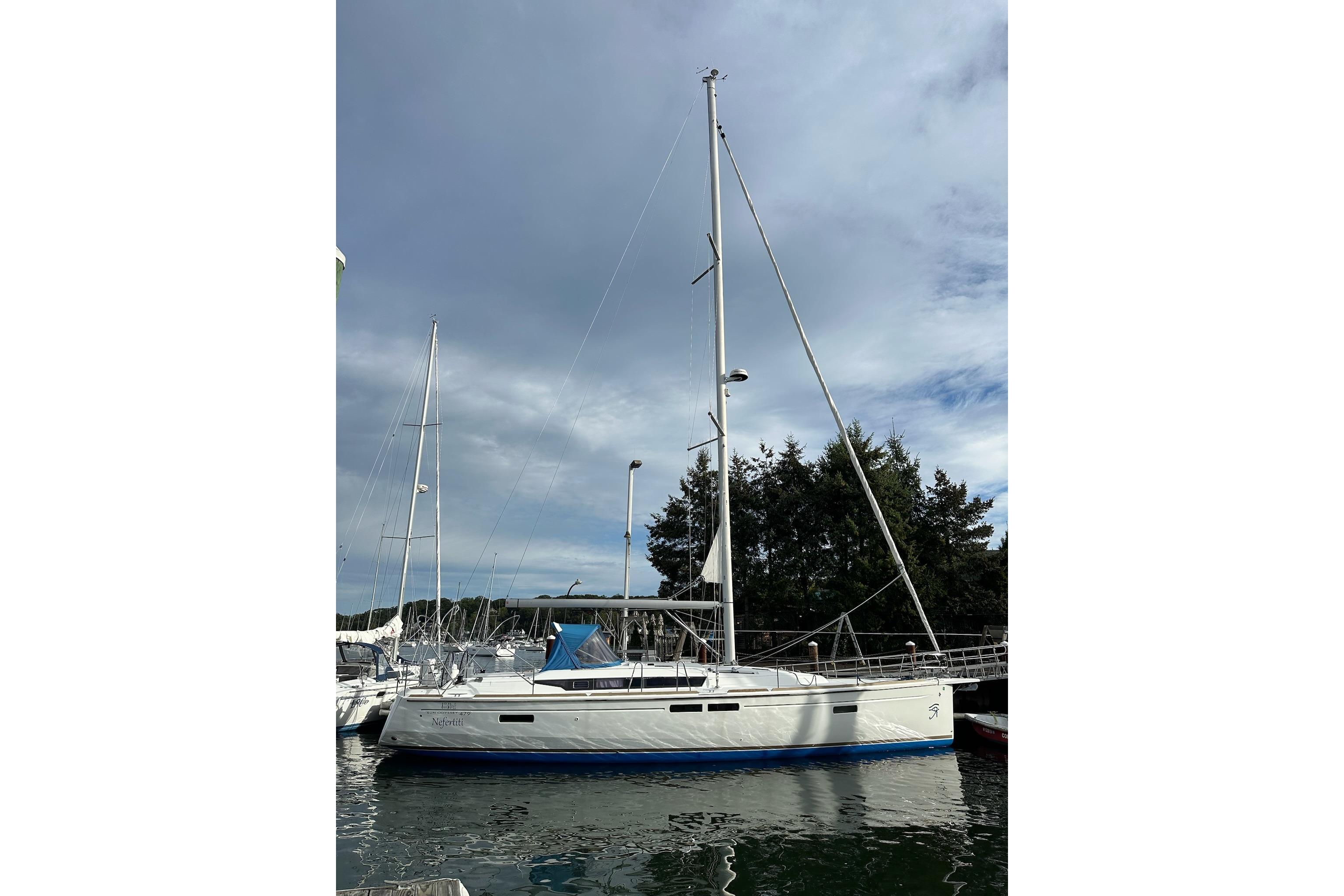 One-owner 2018 Jeanneau Sun Odyssey 479 featuring the desirable 3-cabin, 3-head layout and teak cockpit. Bright, comfortable interior with a fully equipped starboard galley, electric heads, and ample storage. Well-appointed for cruising with Raymarine electronics, bow thruster, dodger and bimini, swim platform, and solar panels.