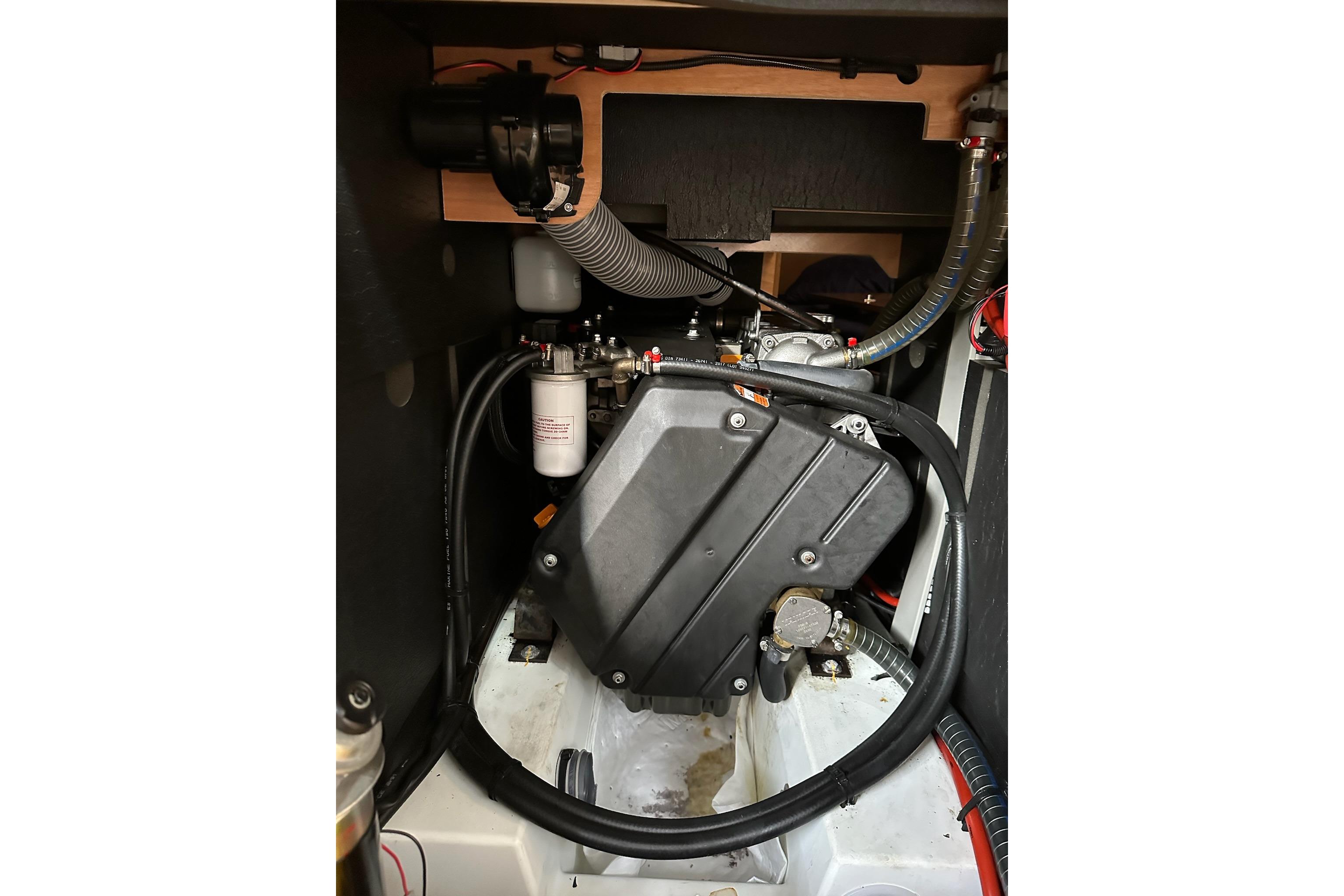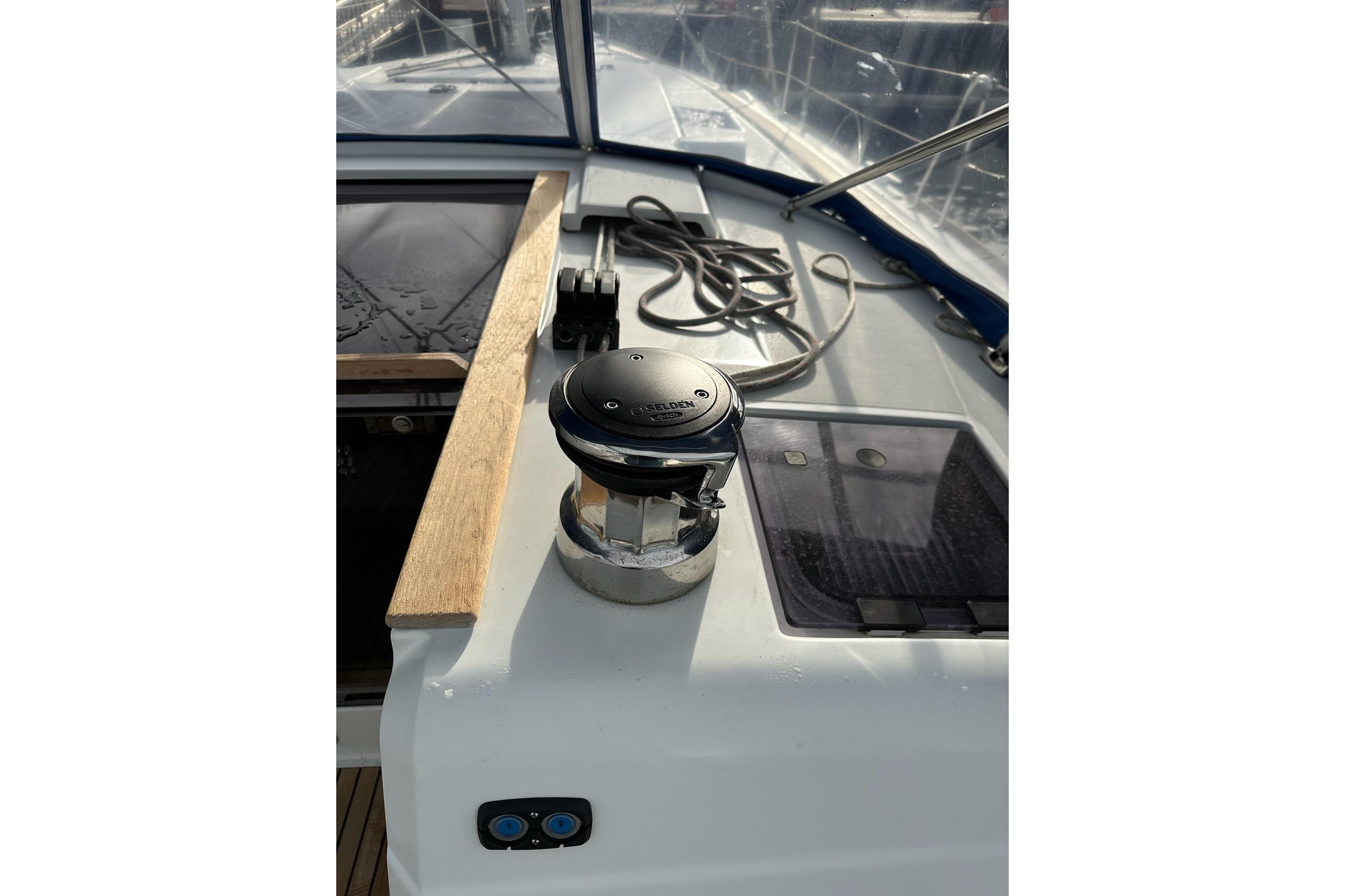 Equipment & Running GearThe boat is well equipped for comfort and convenience, featuring: solar panels, manual and electric bilge pumps, double lifelines with gates, fenders and dock lines, anchor well with anchor and rode, windlass, bow sprit, and stainless steel anchor roller. The cockpit includes a folding table, cushions, hot and cold cockpit shower, and an electric drive for the transom swim platform with telescopic ladder. Additional features include a dodger and bimini, bow thruster, wood striker rails, outboard engine brackets.