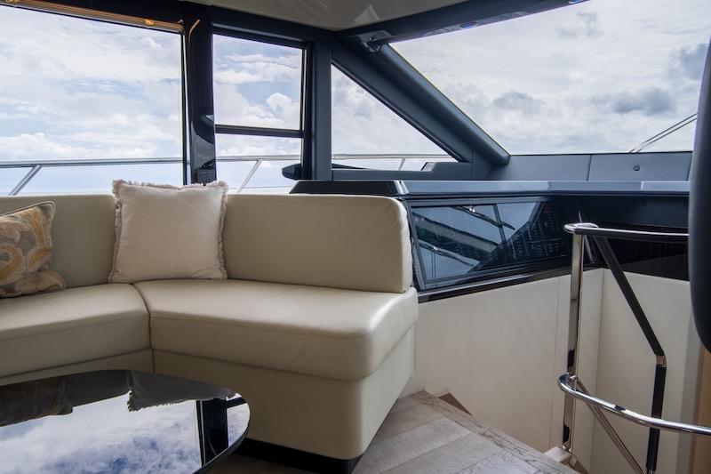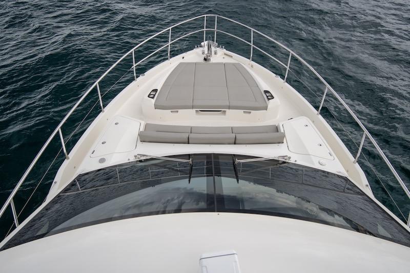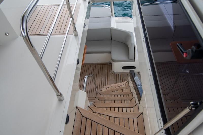 Outdoors, the high livability ensures full relaxation in each area. On the flybridge, there is a practical sun lounger next to the well-equipped double helm station, a table with a surrounding sofa, a cabinet with a fridge, a barbeque, a sink, an ice maker, and a terrace towards the stern that can be equipped with sunbeds. The bow deck ensures maximum quiet and is accessible in total safety through comfortable and protected walkways.