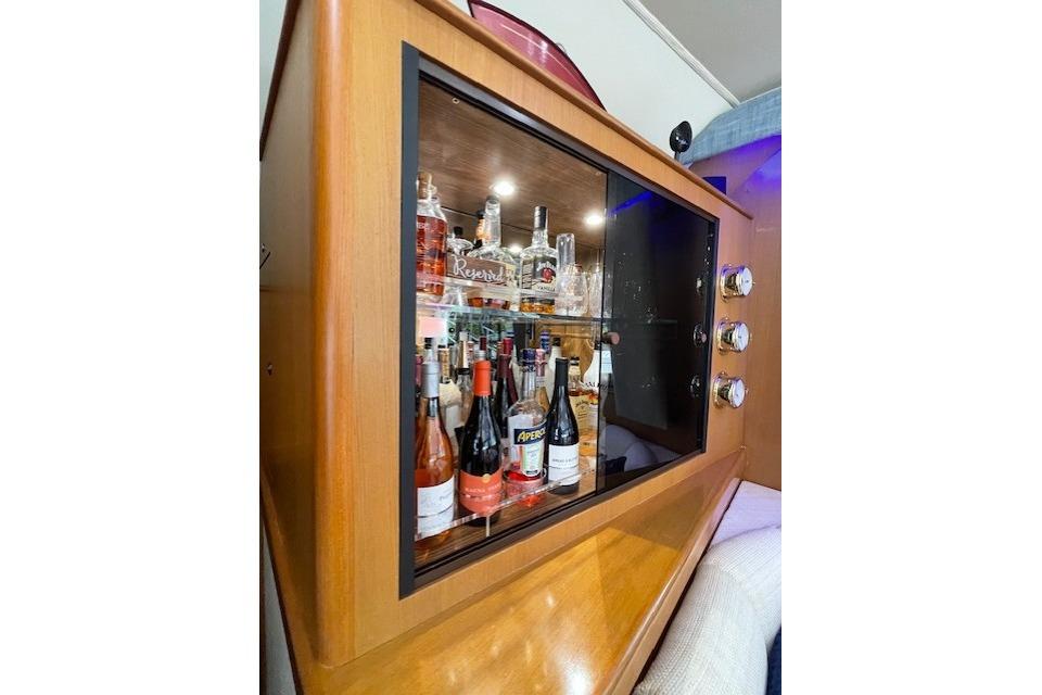 - 2023 New Remote controlled retractable flat screen T.V. custom and cabinetry starboard salon