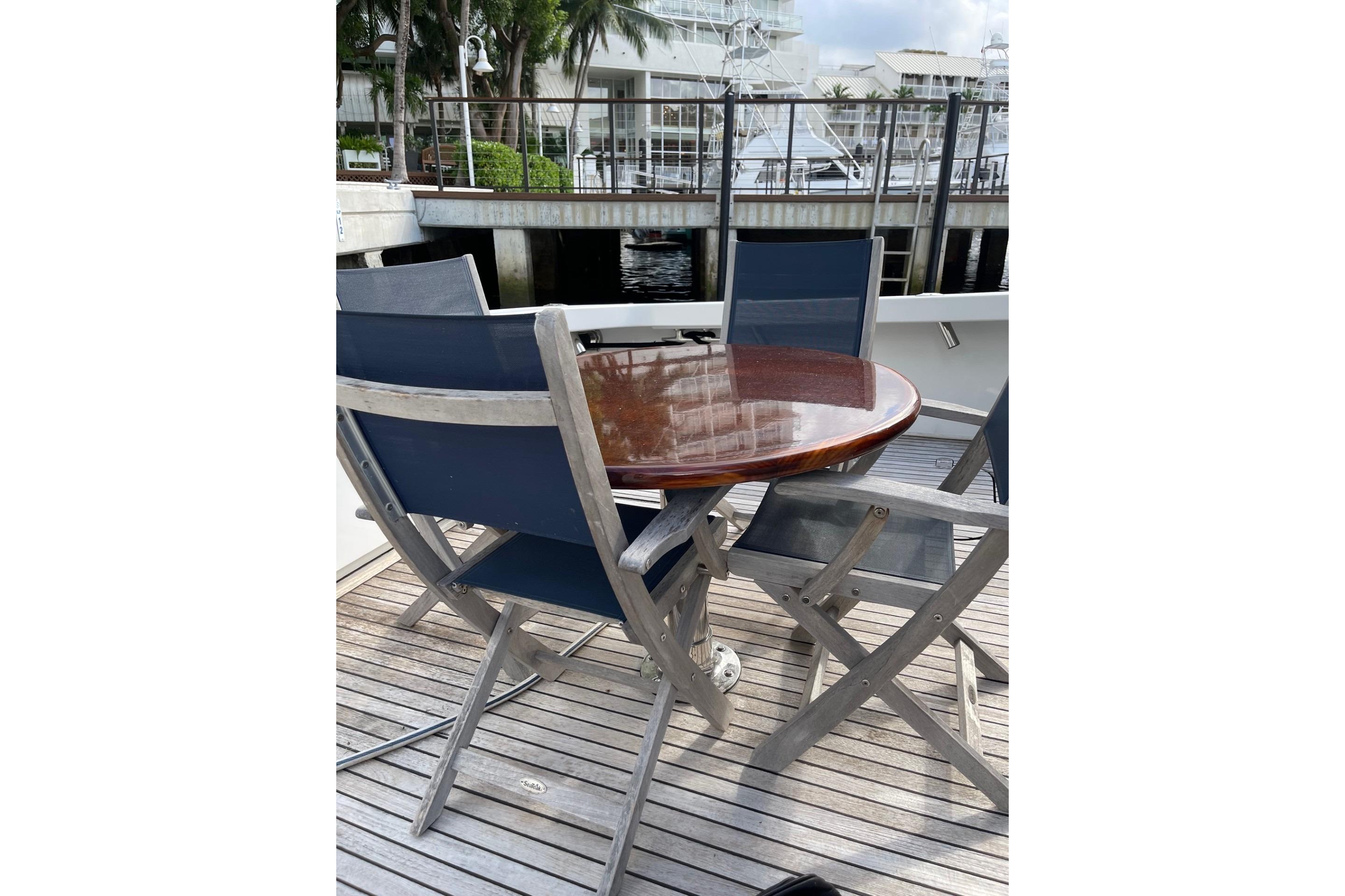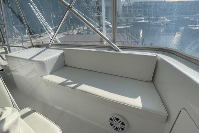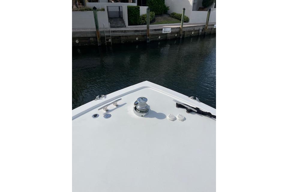 Cockpit and DeckThe cockpit with new in 2023 teak deck, is very spacious and since the yacht has never been fished, it currently serves as an outdoor area for cocktails and gatherings of family and friends. However, if a future owner desires, this huge cockpit is perfect for battling the world's biggest game fish. The deck: side decks to the bow has a toe rail, grab rails alongside the superstructure gaining access to the bow with anchor pulpit and windlass.