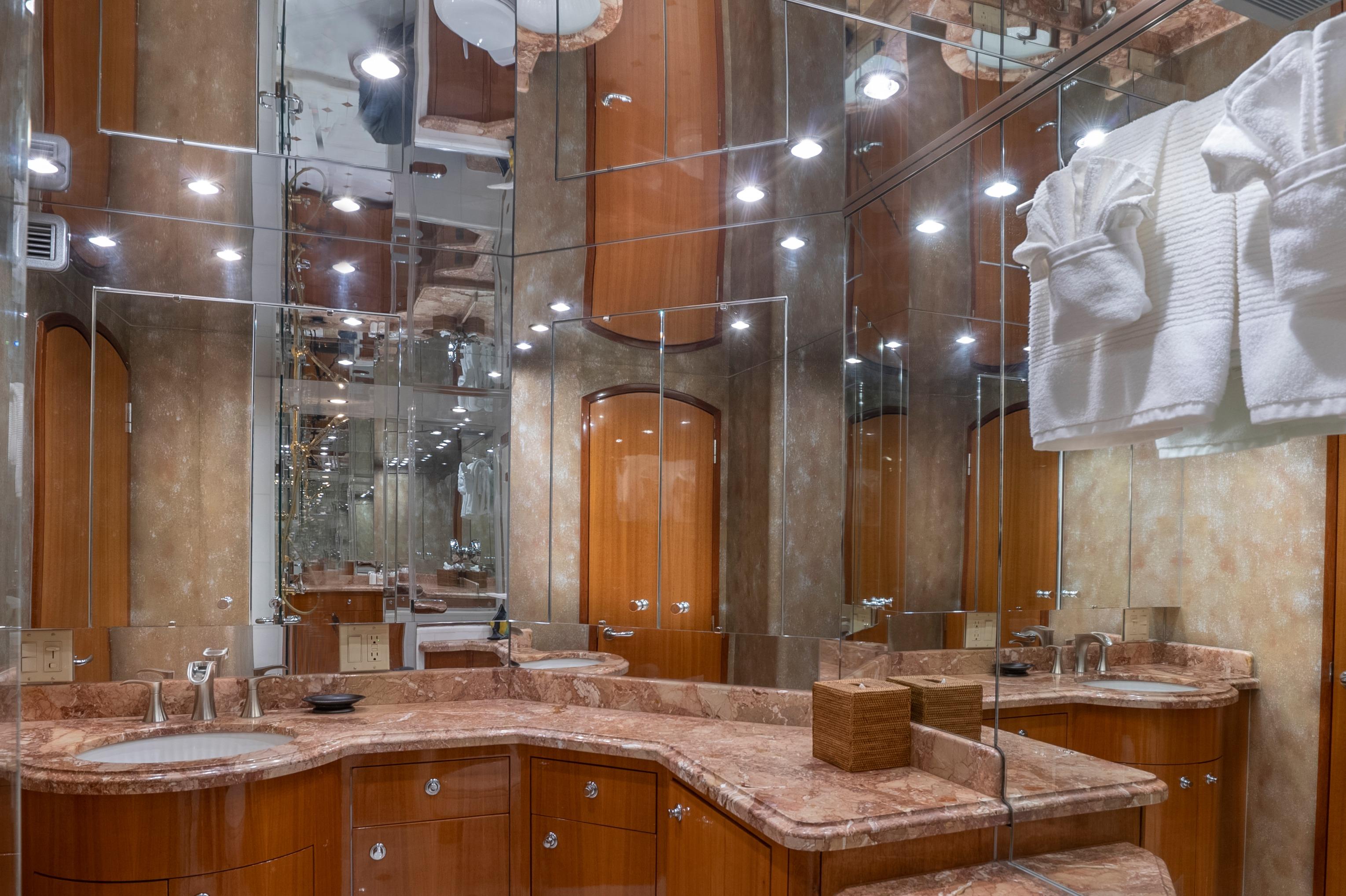 Below deck, Gallopin offers four beautifully appointed staterooms, each with ensuite accommodations. The full-beam master suite is a private haven, featuring a king berth, panoramic windows, a walk-in wardrobe, and a marble-clad ensuite bath. Every cabin reflects a dedication to comfort and tranquility befitting a true luxury yacht.