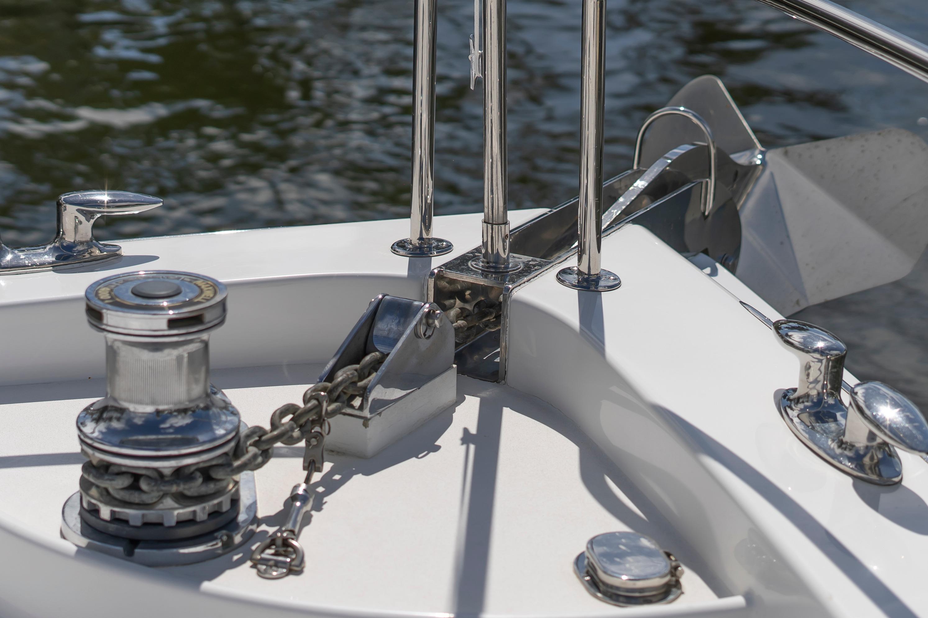 From the moment you approach her gleaming white hull — a durable fiberglass masterpiece sculpted for strength and grace — Gallopin exudes prestige. The signature Hatteras lines convey both power and poise, while her sleek semi-displacement design ensures stability and efficiency whether cruising coastal waters or embarking on ocean passages.