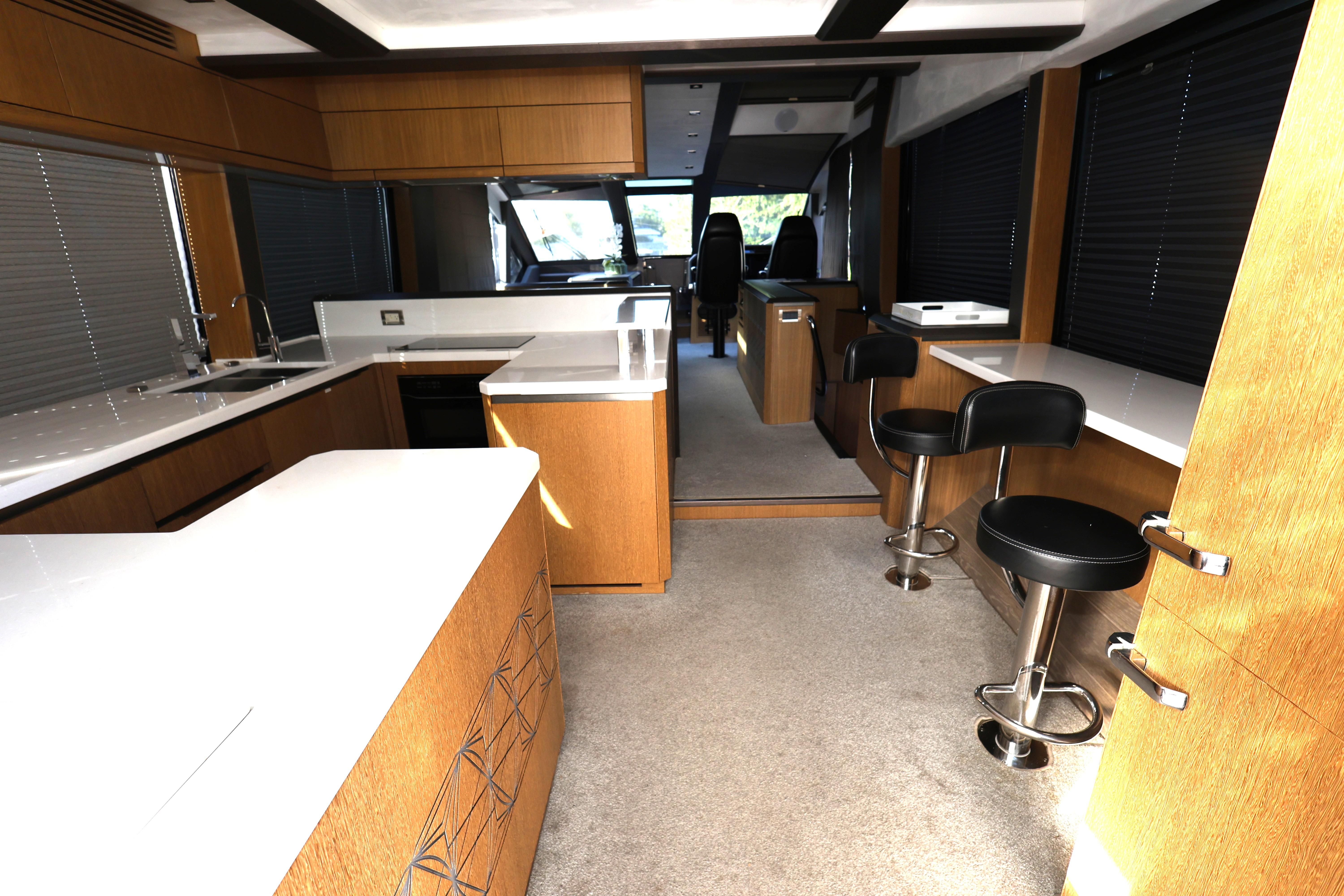 With the touch of a button the aft deck goes into “beach mode”. Sliding windows and aft doors bring the salon and the party outdoors. Scenic views abound through large sweeping windows throughout the salon, forward helm and gourmet galley. Luxurious accommodations await including two owner’s staterooms with plush centerline beds and en-suite heads. Choose your favorite, full beam centerline or forward centerline.