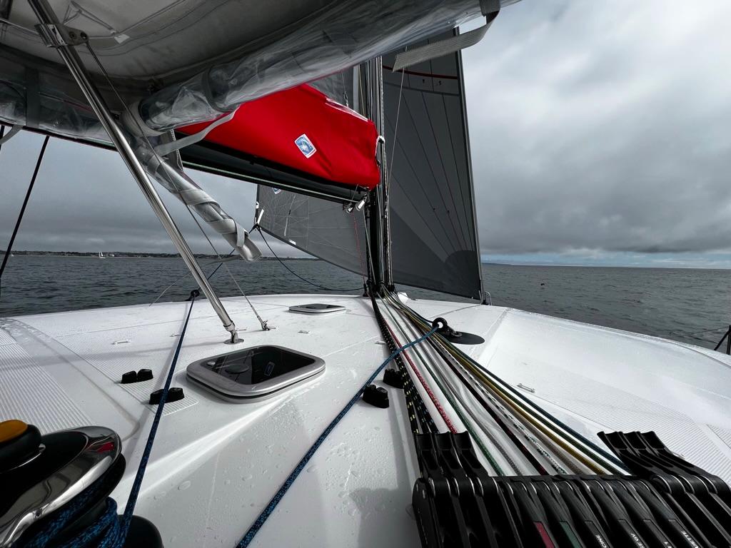 The NEEL 43 can accommodate up to 8 people, with its 3 double cabins and its saloon that can be converted into a double berth, isolated at night by a system of curtains. A saloon and a cockpit which communicate easily and which form the famous Cockloon®, the original and convivial layout of NEEL-TRIMARANS.