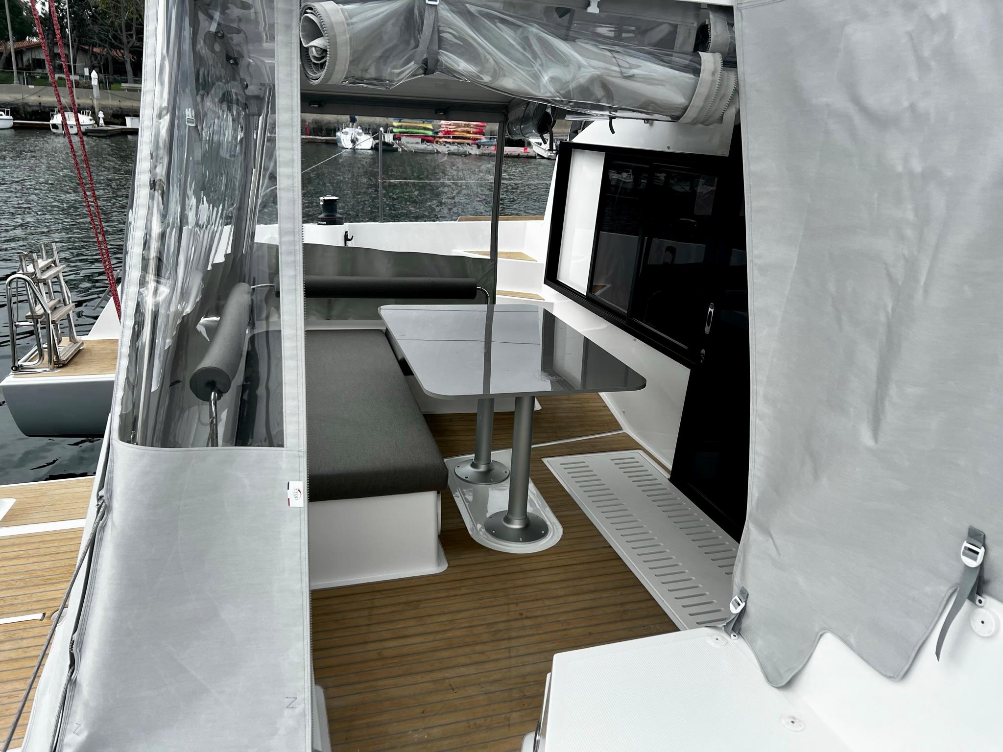 The ergonomic and elevated helm station allows for safe and serene sailing, all manoeuvres can be carried out from there, which also allows for short-handed manoeuvring.
