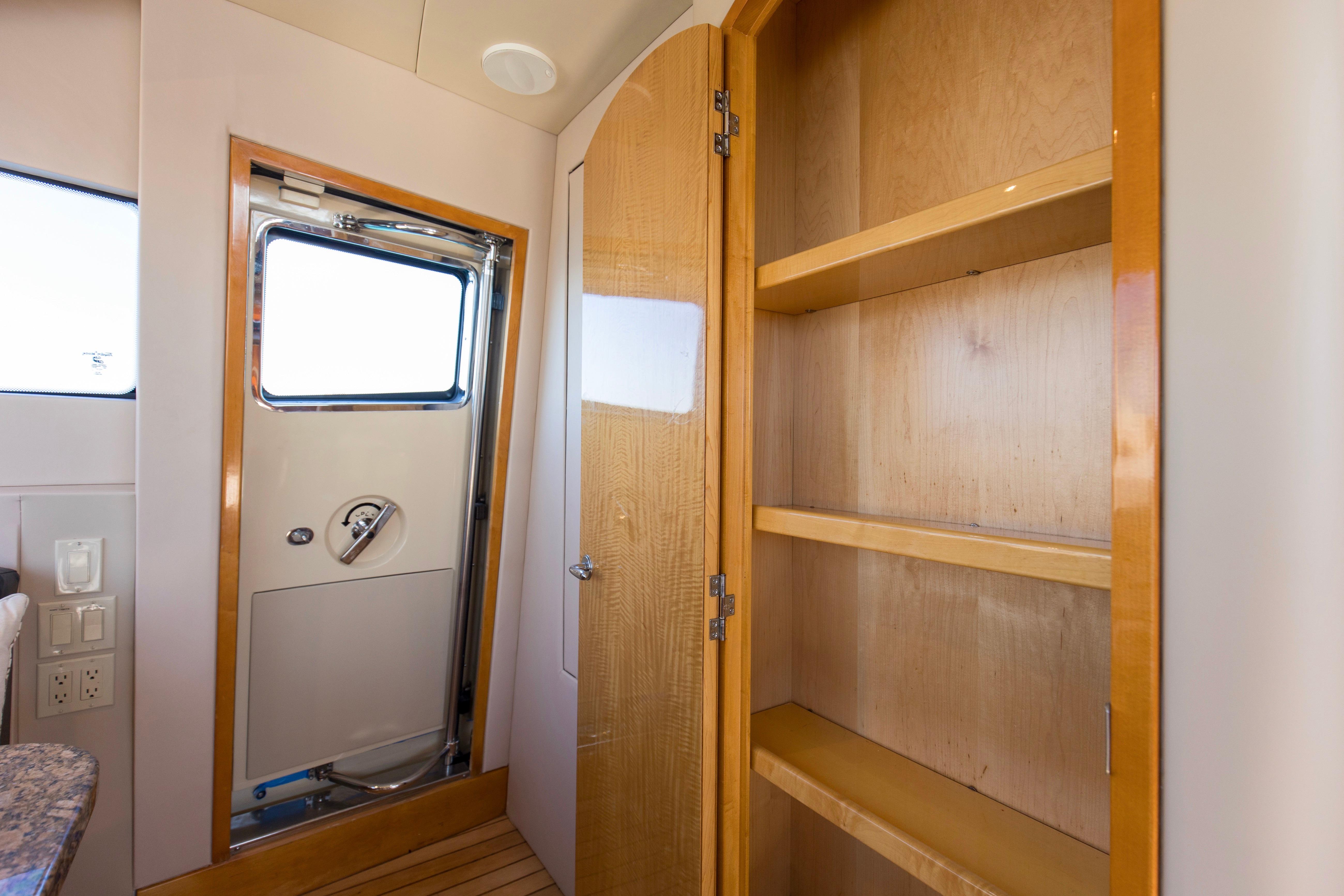 The Hatteras 80 Motor Yacht Sky Lounge, an enclosed bridge edition that takes an already spacious arrangement and makes it the category leader for interior volume. The 80's innovative enclosed bridge design provides the panoramic view of a sky lounge, along with an additional 252 square feet of accommodations. On the main deck, the Sky Lounge edition features an enlarged salon, additional sofas and club chairs, along with a unique country kitchen forward. As strong sales have shown since its introduction in 2003, the Hatteras 80 Motor Yacht is already a proven hit among offshore cruisers. With the Sky Lounge introduction, Hatteras has further establish itself as the benchmark in the 80-foot yacht segment with this yacht leader.