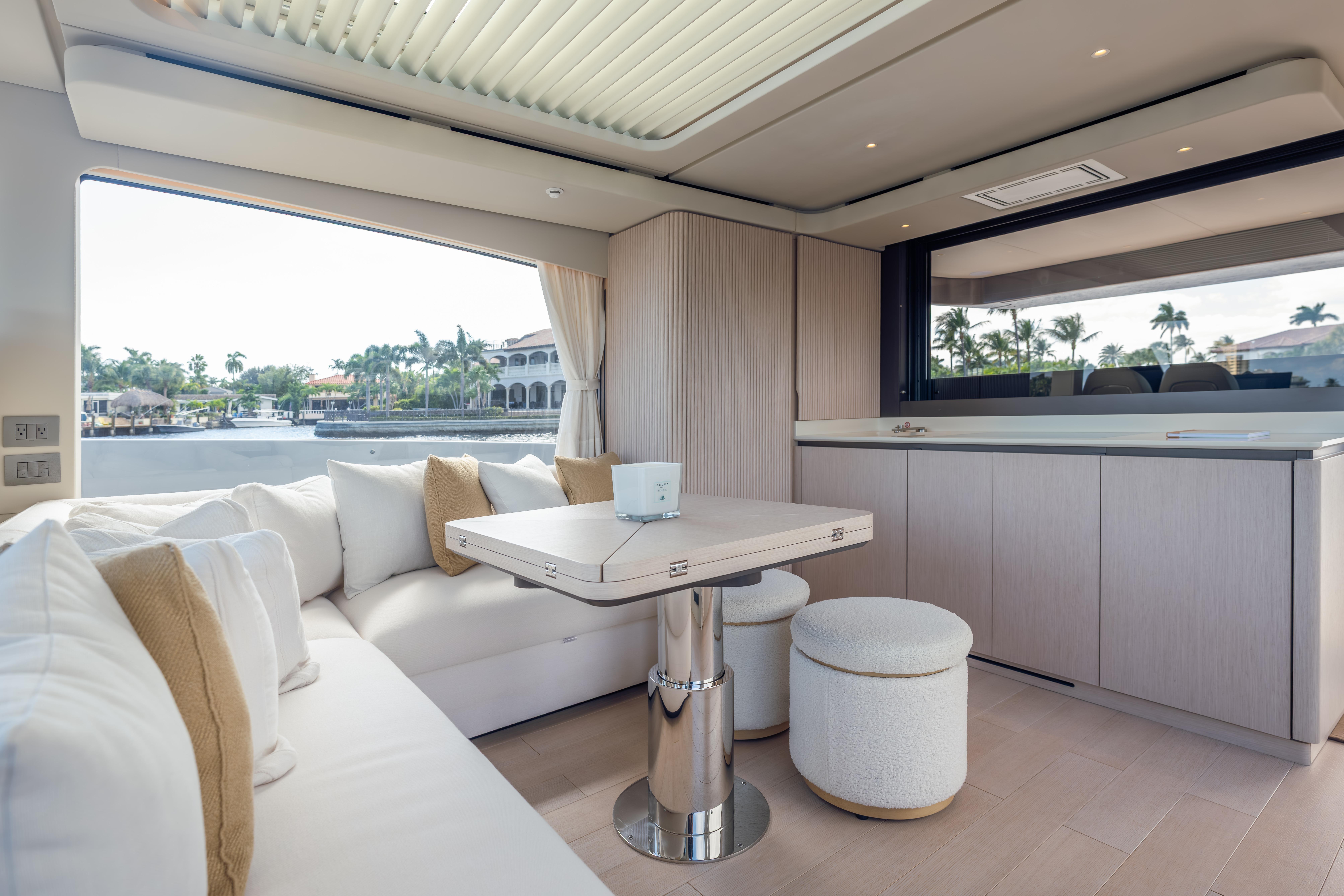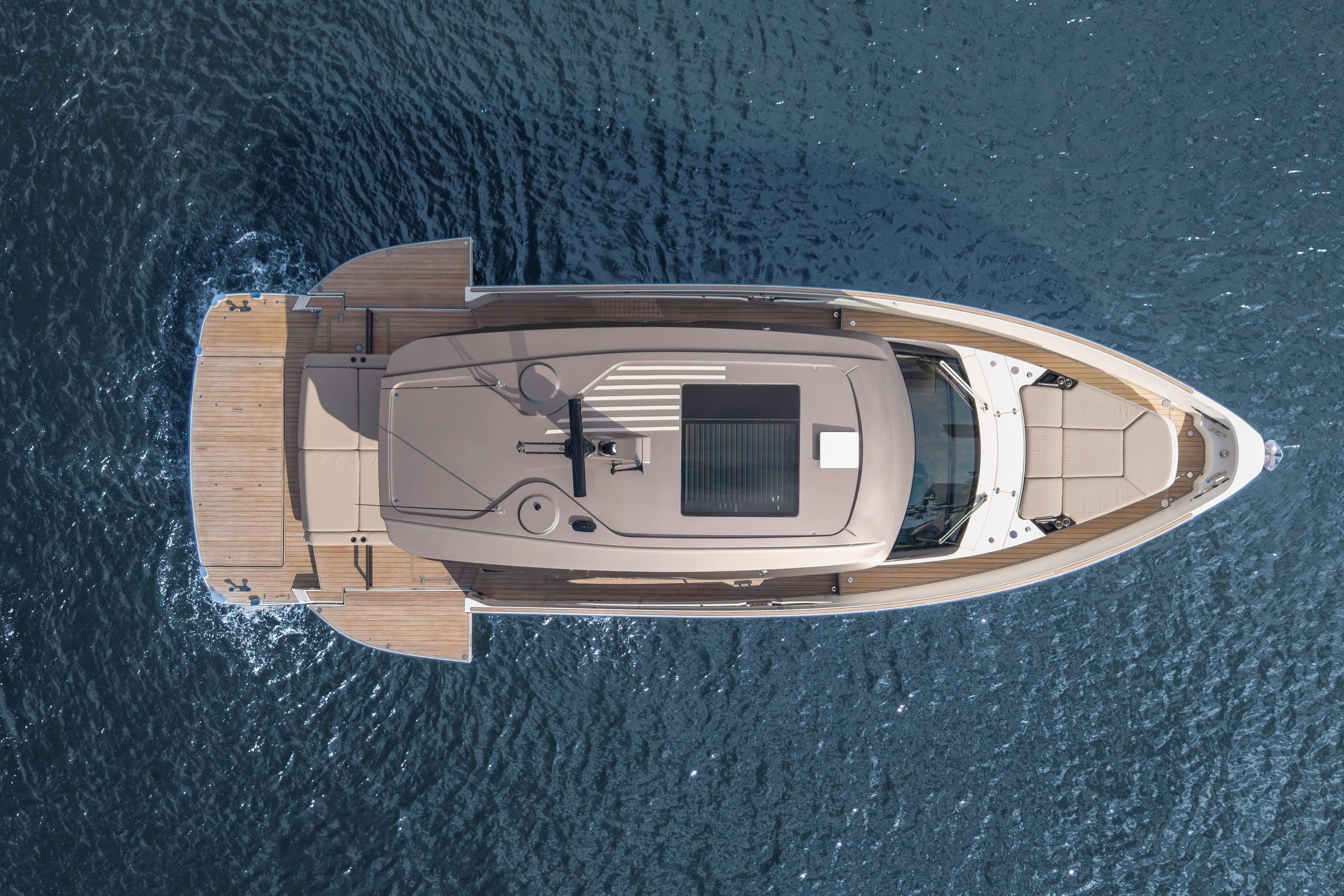 The first model of the first hybrid Series for families developed by Azimut offers seamless cruises with a barrierless, authentic contact with the sea. Embracing a more conscious relationship with nature, Seadeck 6 is the first yacht of the most efficient Series of boats ever designed, thanks to technological solutions aimed at reducing emissions by up to 40% and the Fun Island, a reinvented cockpit that embraces the sea, an unprecedented sea-level outdoor lounge for limitless contact with the water, maximizing the relationship with the ocean to offer an immersive and harmonious natural experience all around and a lifestyle based on well-being.